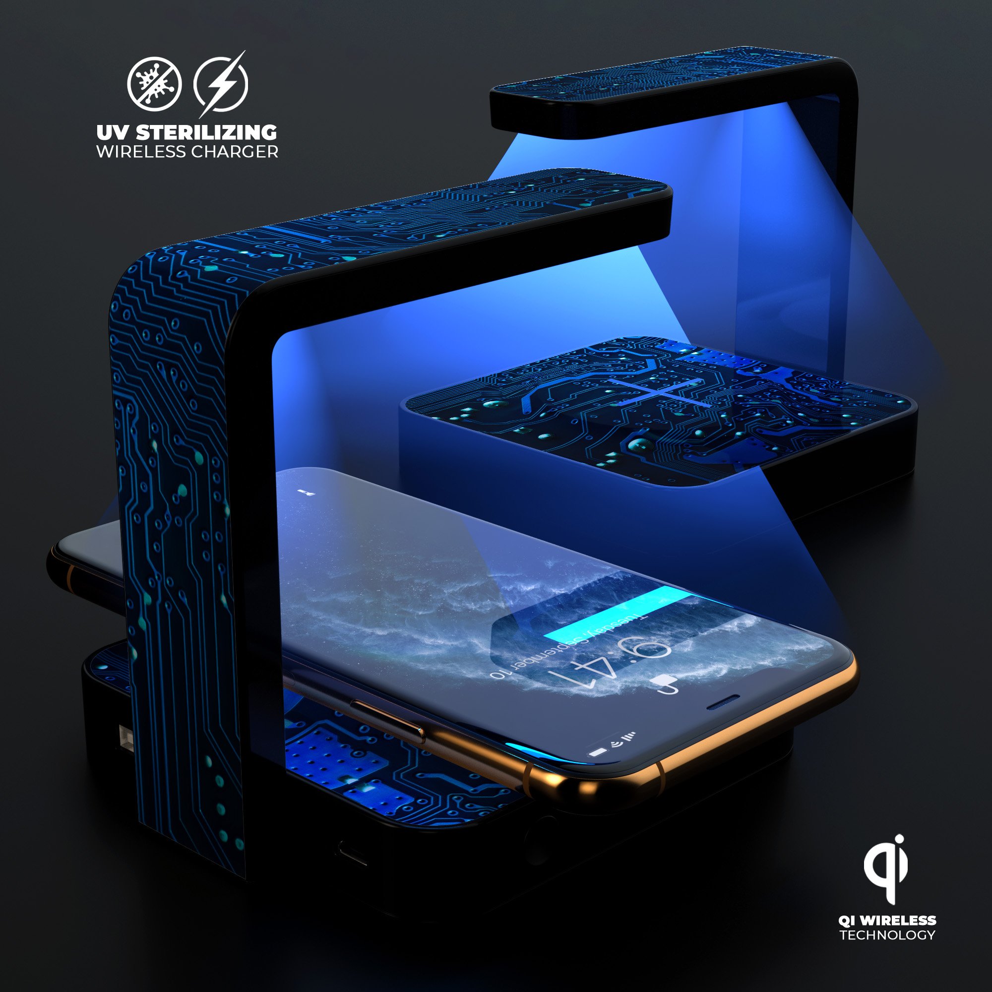 In today's world, maintaining hygiene is more important than ever, especially when it comes to our frequently used devices like smartphones. Did you know that the average person touches their phone over 2,000 times a day? This constant contact can lead to the accumulation of harmful bacteria and germs on your device's surface. To combat this issue, we proudly present the Electric Circuit Board UV Germicidal Sanitizing Wireless Charger, a revolutionary product designed to keep your phone clean and safe.