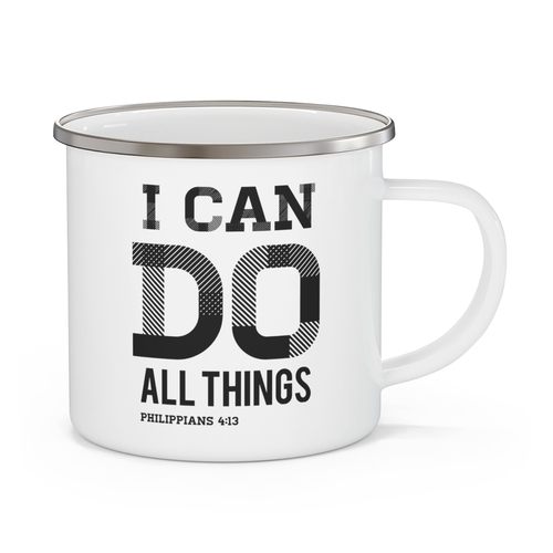In summary, the Enamel Camping Mug with the Philippians 4:13 design is a durable, stylish, and versatile choice for anyone who enjoys beverages on the go. Its lightweight construction, comfortable handle, and easy-to-clean surface make it a practical addition to your collection. Whether you’re at home or out in nature, this mug is sure to inspire and serve you well.