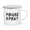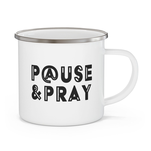 The 'Pause and Pray' black illustration adds a unique and stylish touch to this mug. It's not just a functional item; it's also a statement piece that reflects your personality and values. Whether you're sipping your morning coffee or enjoying a hot chocolate by the campfire, this mug is sure to catch the eye of fellow campers and friends.