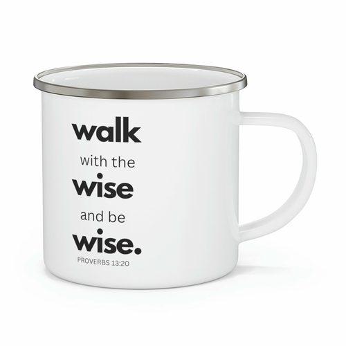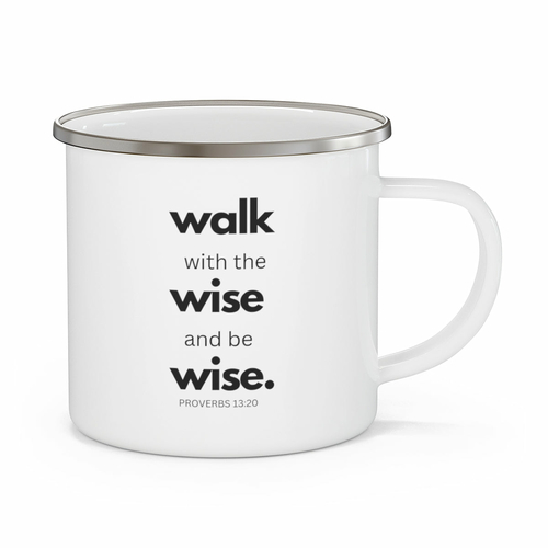 The Enamel Camping Mug, featuring a striking black illustration of 'Walk with the Wise and be Wise', is the perfect companion for your outdoor adventures and cozy indoor moments. Made from durable enamel, this mug is designed to withstand the rigors of camping, hiking, or simply enjoying a warm beverage at home. Its lightweight stainless steel construction ensures that you can carry it effortlessly, making it an essential item for any outdoor enthusiast.