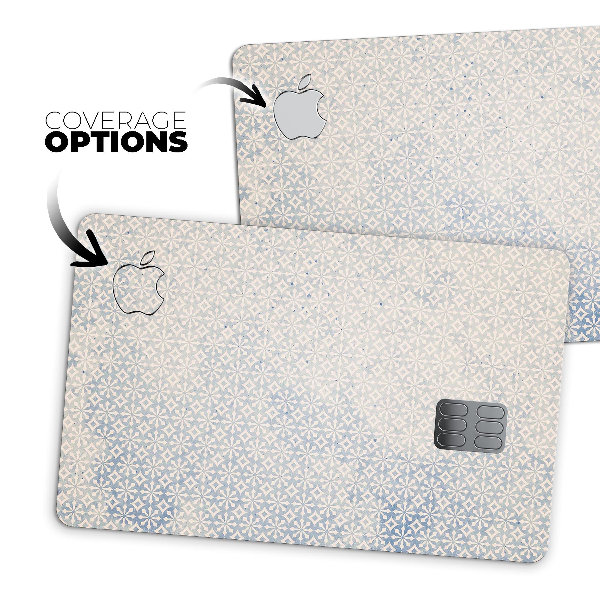 Whether you're heading to a business meeting, a casual outing, or a night out on the town, the Faded Blue and White Snowflake Pattern decal adds a unique flair to your Apple Card. Its stylish design makes it a perfect accessory for anyone who values both functionality and aesthetics. Stand out from the crowd and showcase your personality with this beautiful decal.