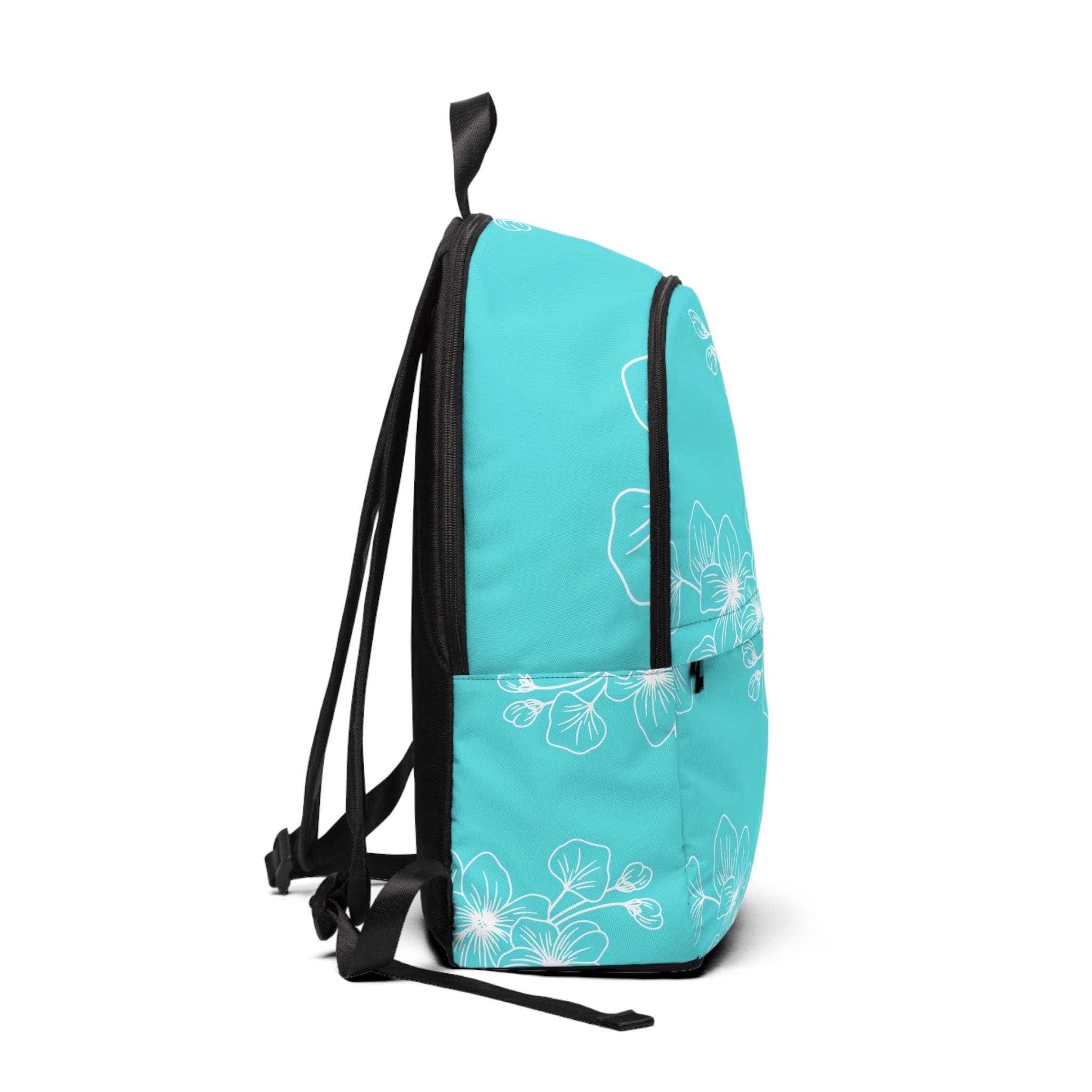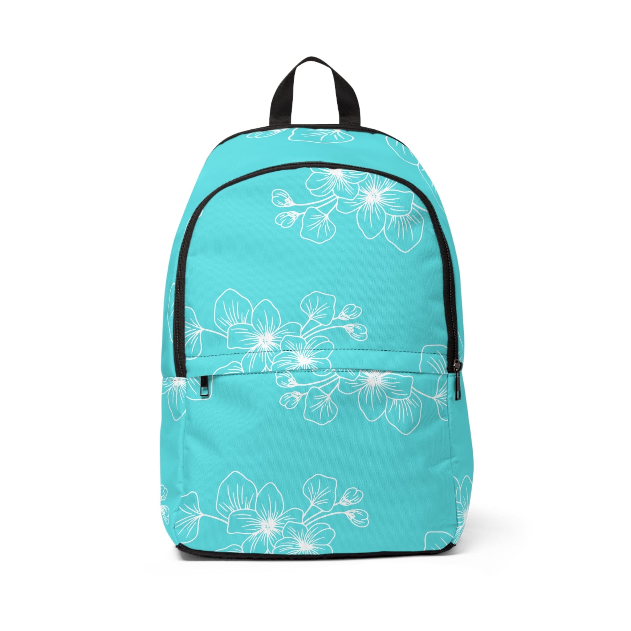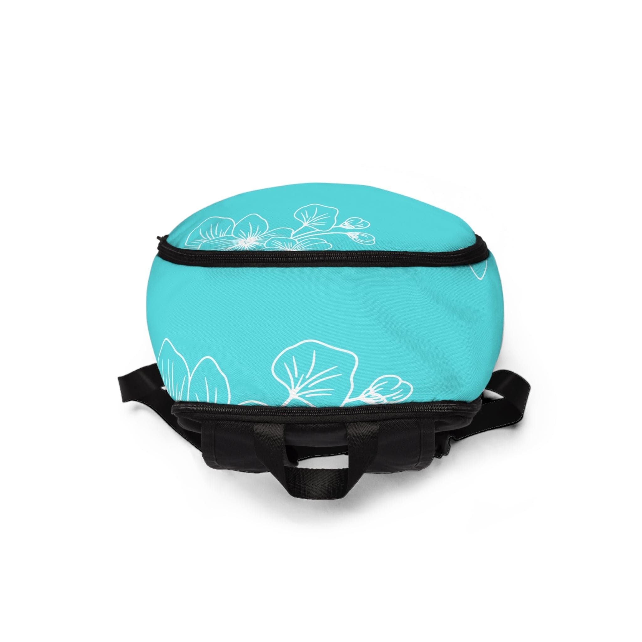 Fashion Backpack in Waterproof Floral Cyan Blue, featuring adjustable straps and spacious design for urban and travel use.
