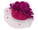 Beautiful fuchsia ladies fashion felt pillbox hat for winter and autumn racing. This elegant pillbox hat with silk and velvet flowers and face veil is made in Australia to complement your outfit.