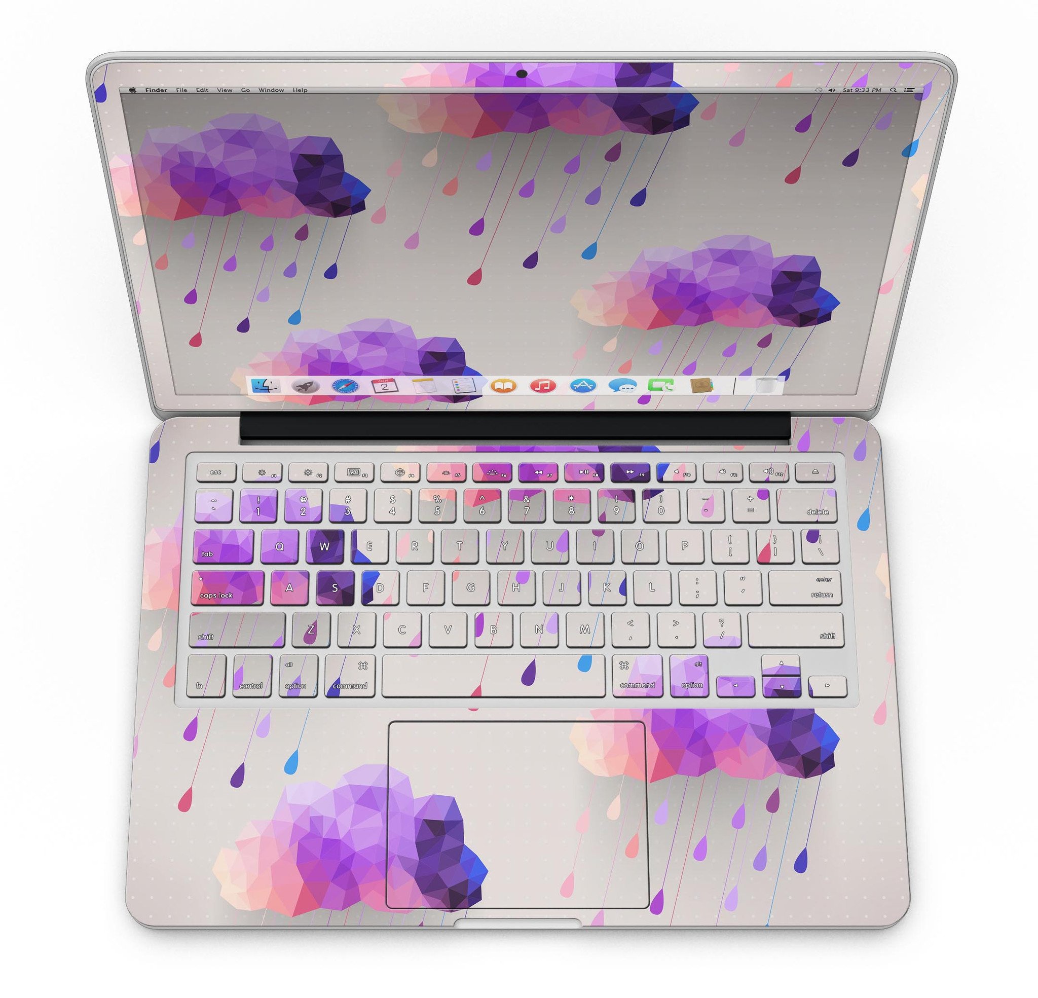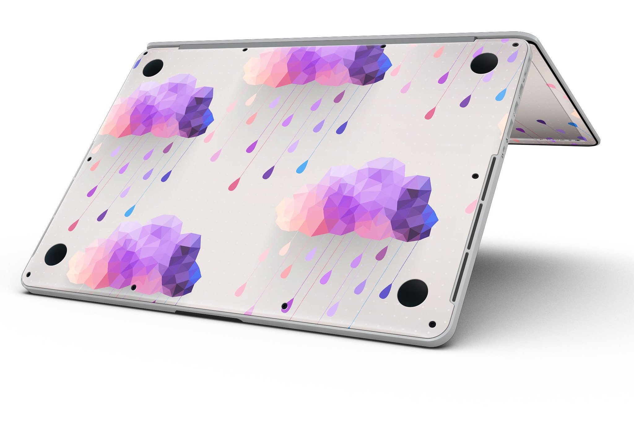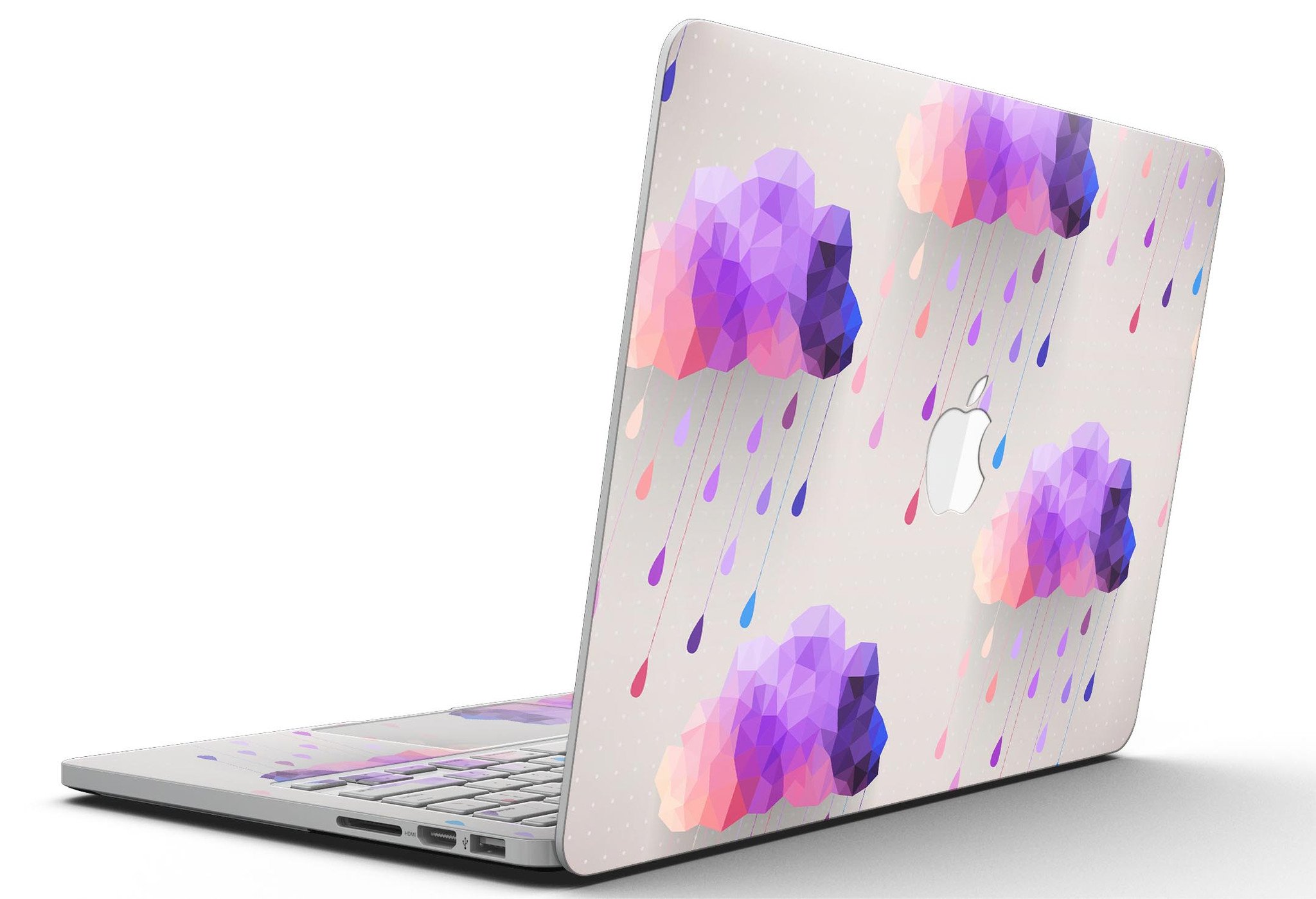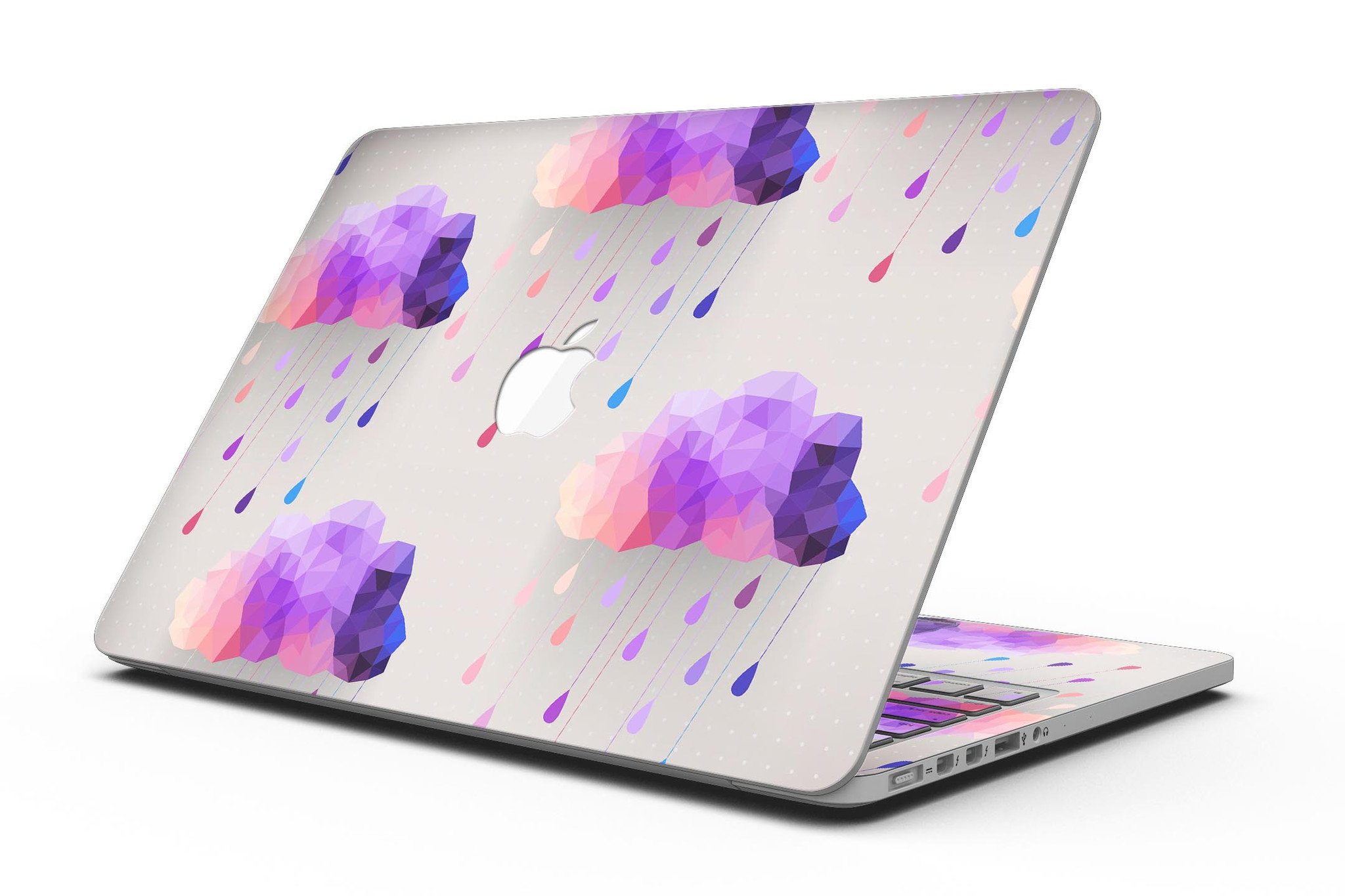 Geometric Rain Clouds skin for MacBook Pro with Retina Display, showcasing vibrant colors and sleek design.