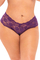 Boyshort panty with elastic detail Galloon lace with scalloped edges Crotchless with lace up back detail Hanging