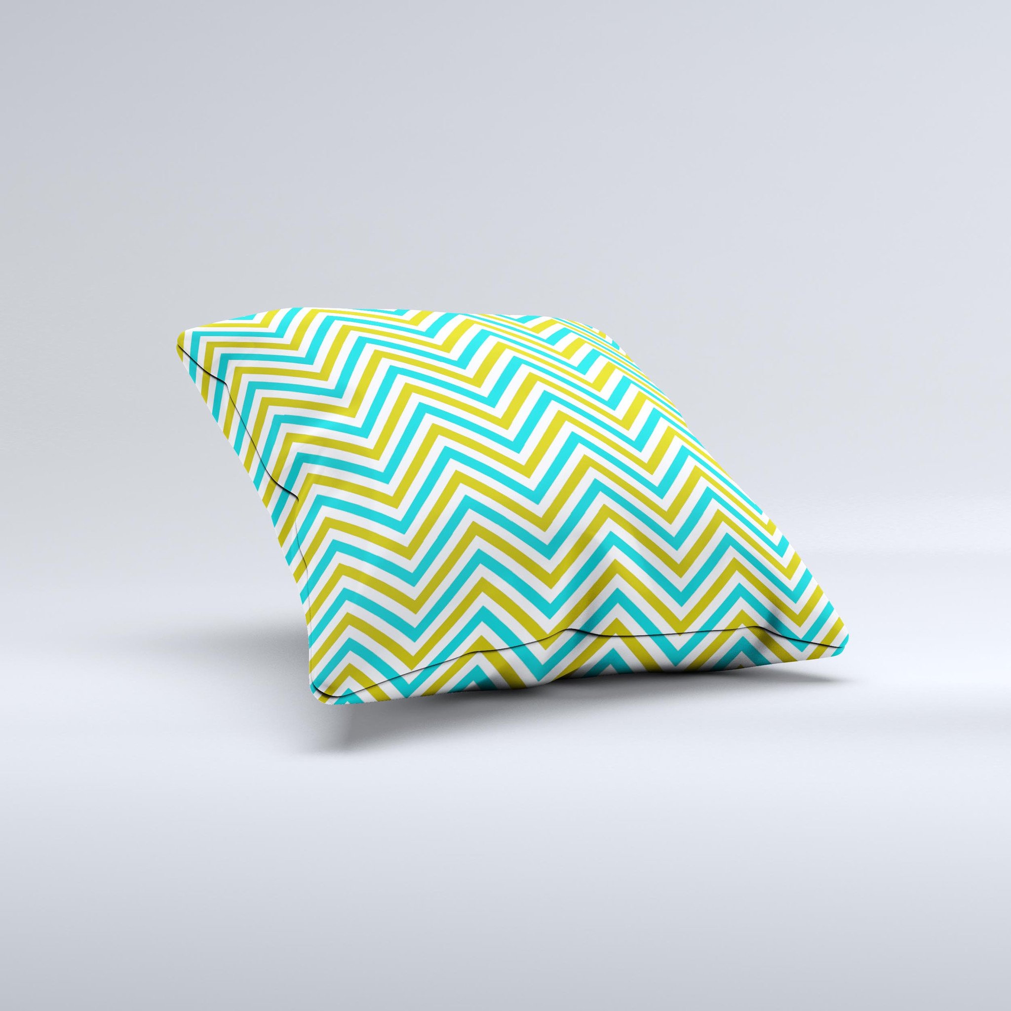 The Gold & Blue Sharp Chevron Pattern Ink-Fuzed Decorative Throw Pillow is versatile enough to complement a variety of decor styles. Whether your home features modern, traditional, or eclectic design elements, this pillow can seamlessly blend in while adding a pop of color and texture. Use it on your sofa, bed, or even as a statement piece in a reading nook.
