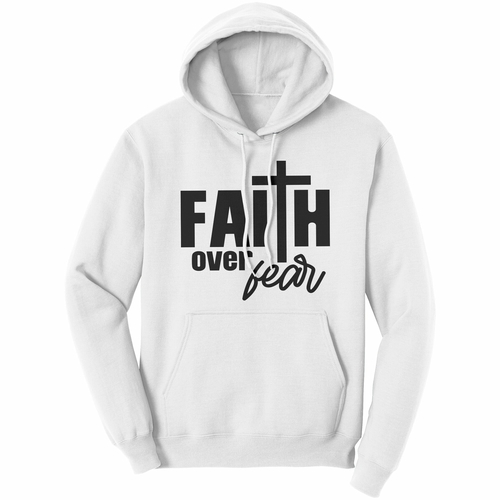 Introducing our Graphic Hoodie Sweatshirt, a perfect blend of comfort and style. This hoodie features the inspiring message 'Faith Over Fear', making it not just a piece of clothing, but a statement of belief and positivity. Crafted from a high-quality 50/50 cotton fleece material, this sweatshirt is designed to keep you warm and cozy without breaking the bank.