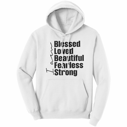 In summary, our Graphic Hoodie Sweatshirt with the 'I am Blessed' design is a must-have for anyone looking to combine comfort, style, and a positive message. With its quality materials, thoughtful design, and affordable price, it's a versatile addition to any wardrobe.