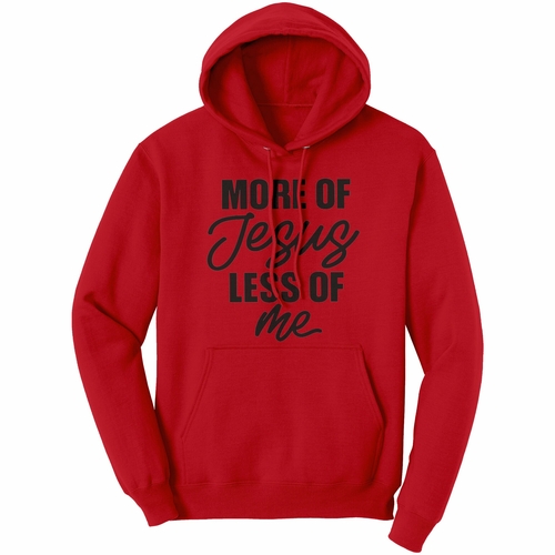 The 'More of Jesus Less of Me' graphic on the front of the hoodie is not just a statement; it's a lifestyle. This eye-catching design makes a bold statement while also serving as a reminder of the values that matter most. It's perfect for those who want to express their faith and positivity through their fashion choices.