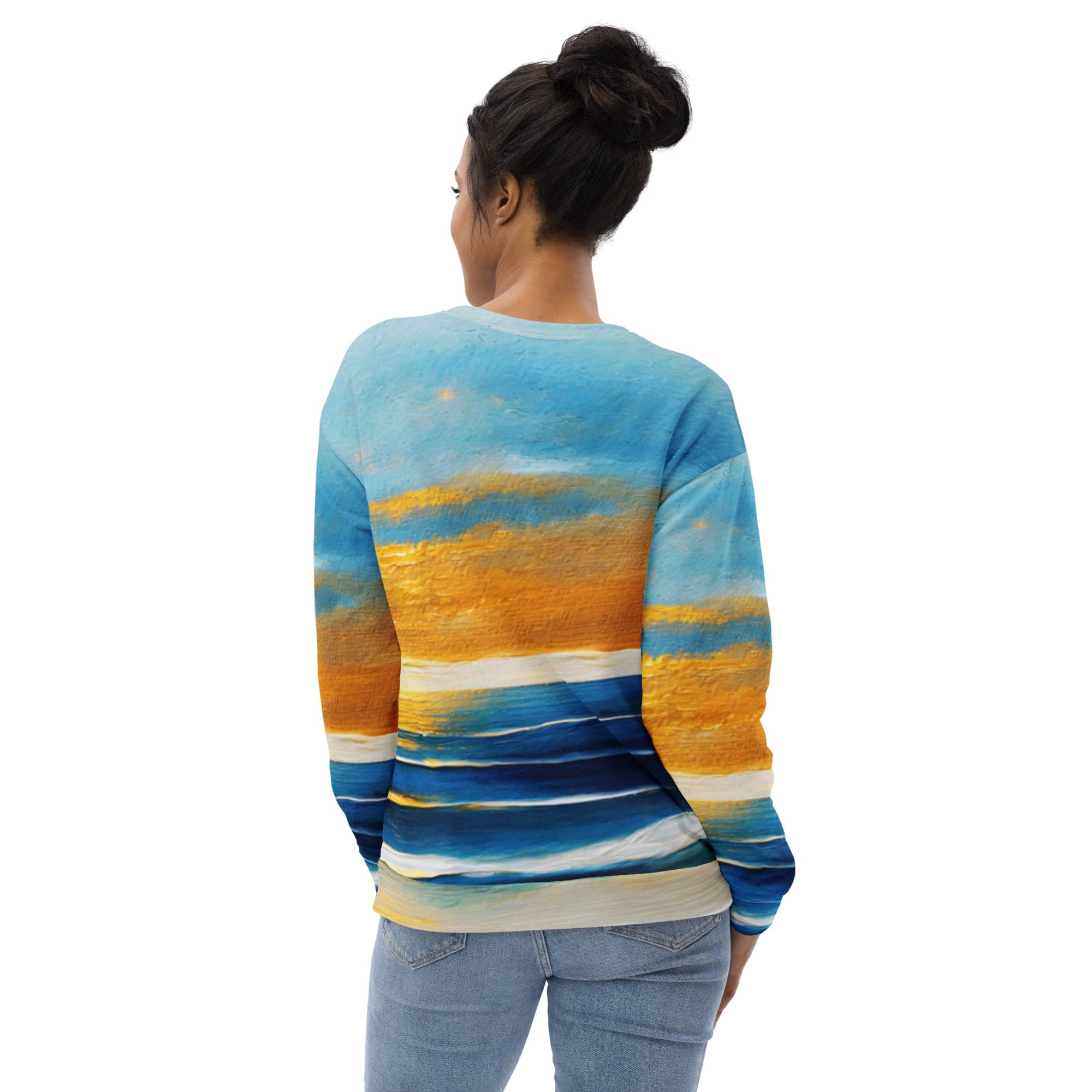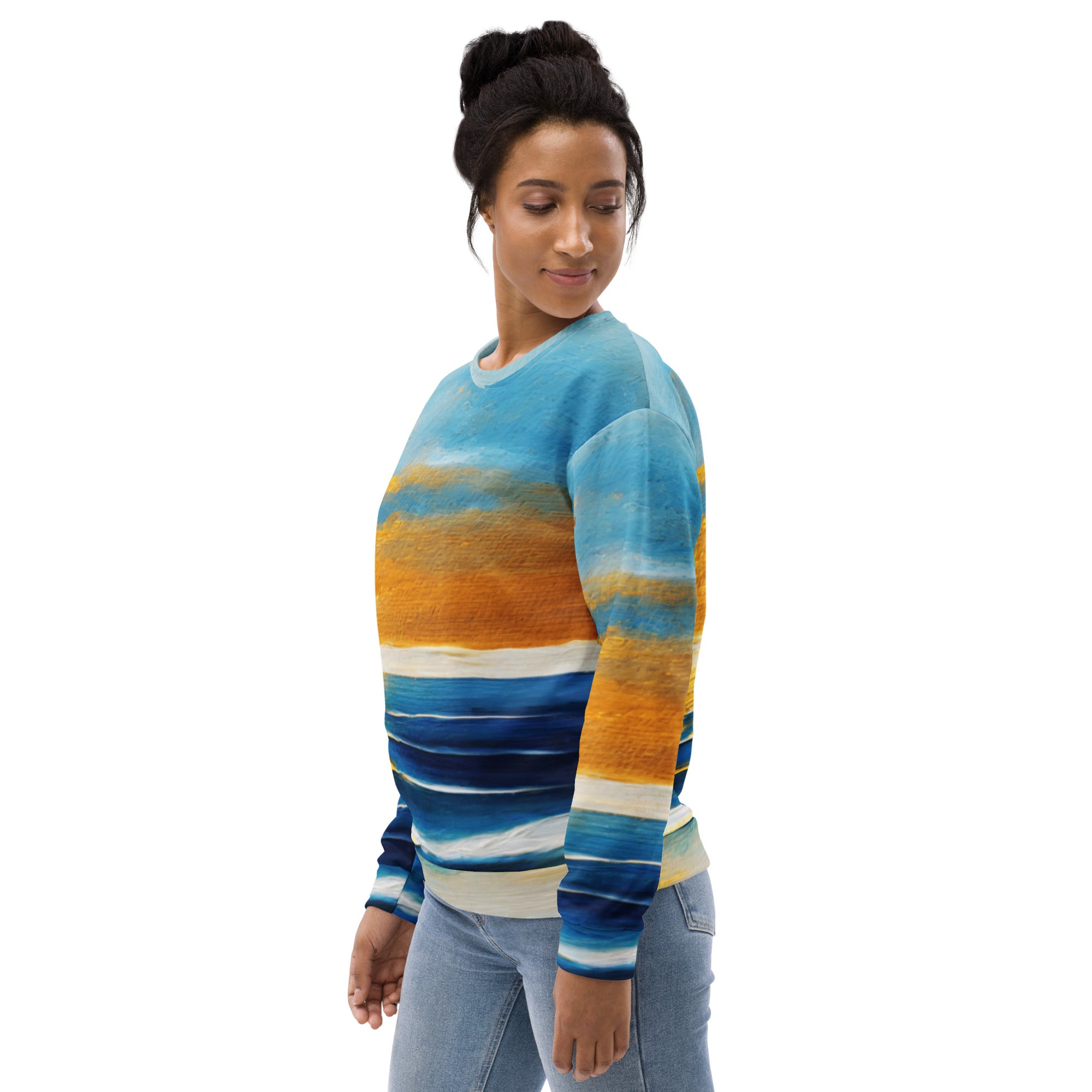 Introducing our Graphic Sweatshirt for Women, a perfect blend of style and comfort. This sweatshirt features a stunning Blue Ocean Golden Sunset Print that is sure to turn heads and make a statement. Designed for the modern woman, it combines a fashionable aesthetic with practical functionality, making it an essential addition to your wardrobe.