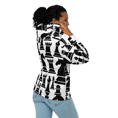 In summary, the Graphic Zip Hoodie in black and white chess print is a must-have for anyone looking to combine style, comfort, and sustainability. With its high-quality materials, thoughtful design, and versatile fit, it’s sure to become a staple in your wardrobe.