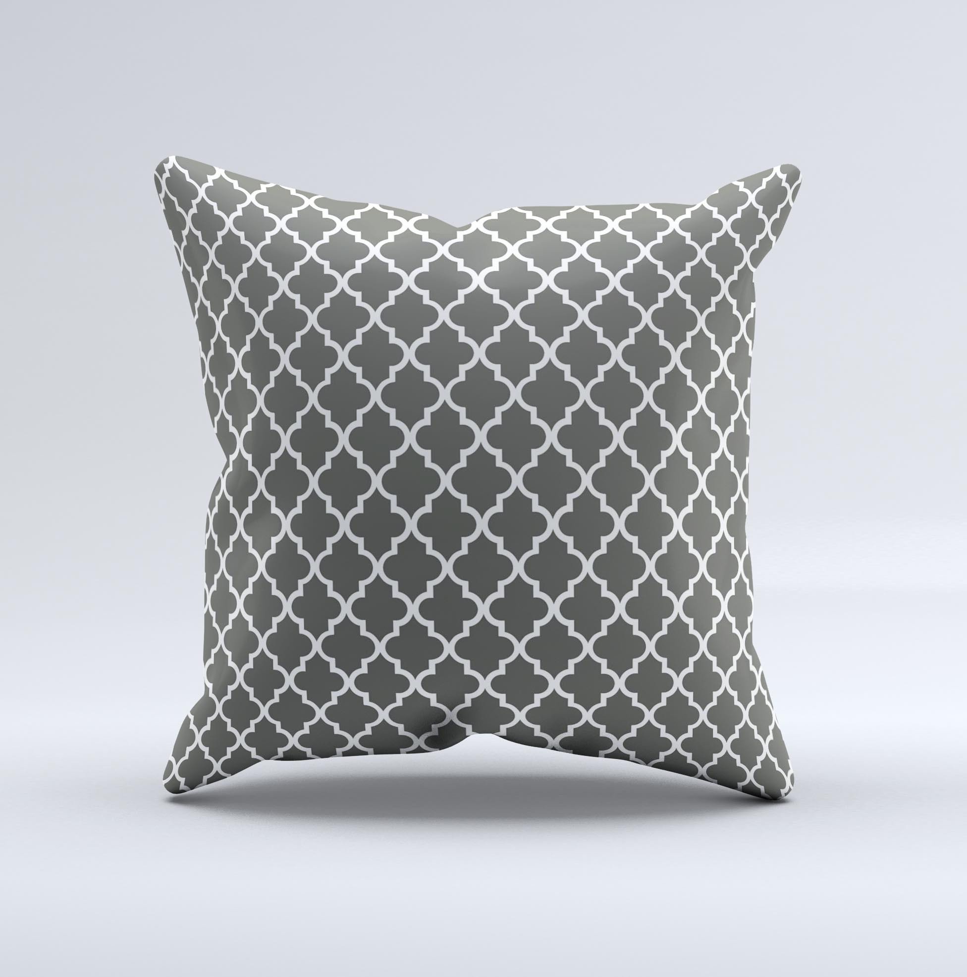 Gray and white decorative throw pillow featuring a seamless Moroccan pattern, handcrafted in Virginia with high-quality materials.