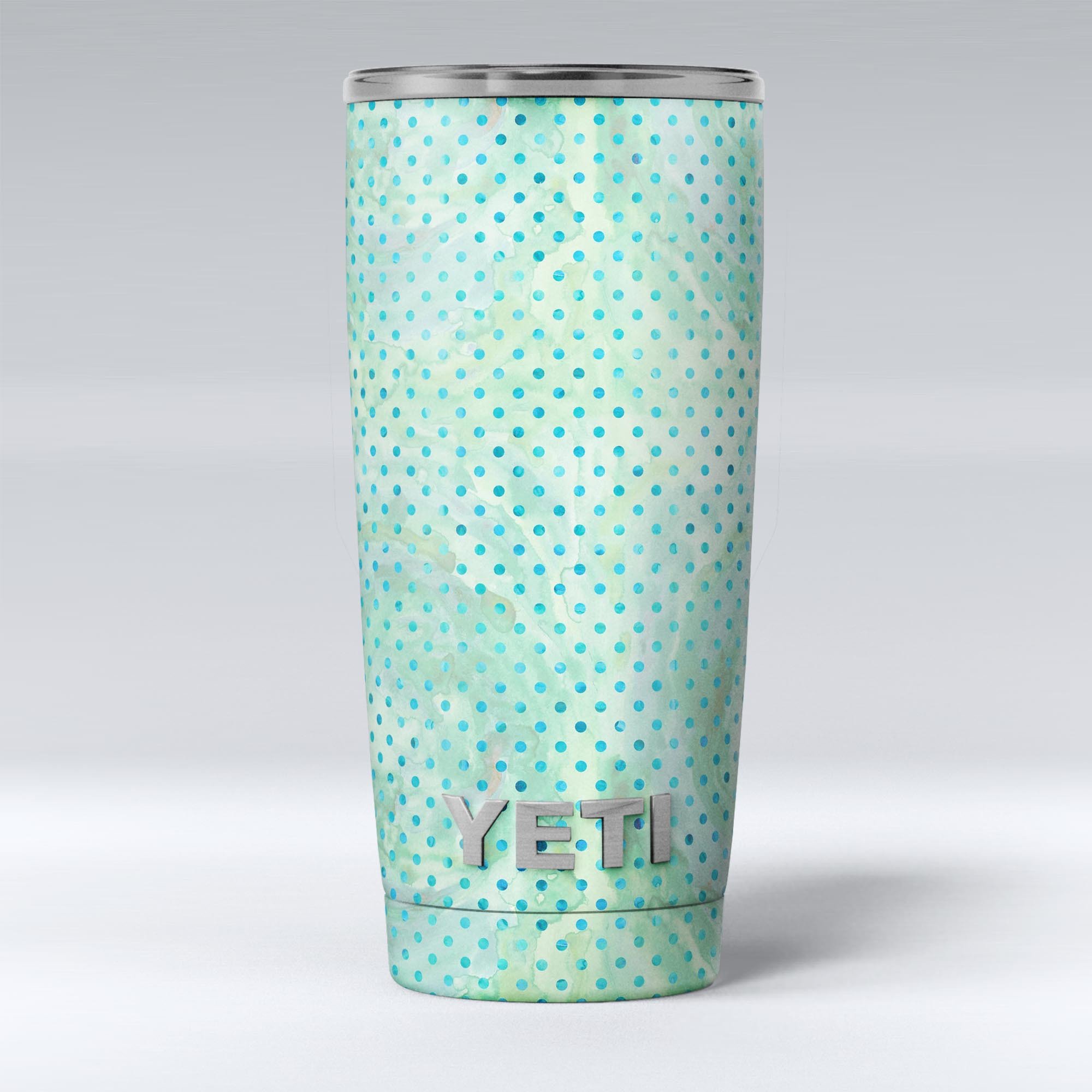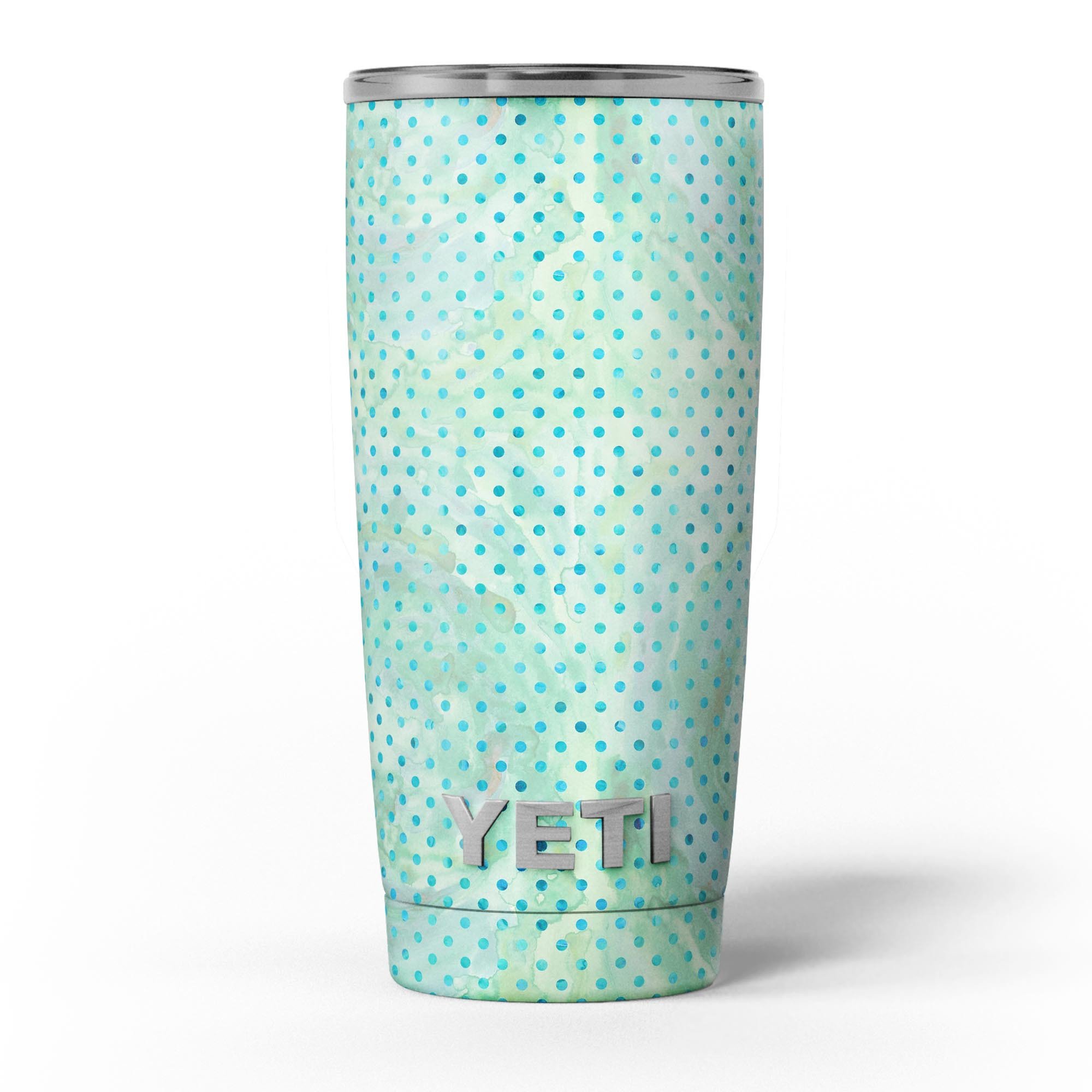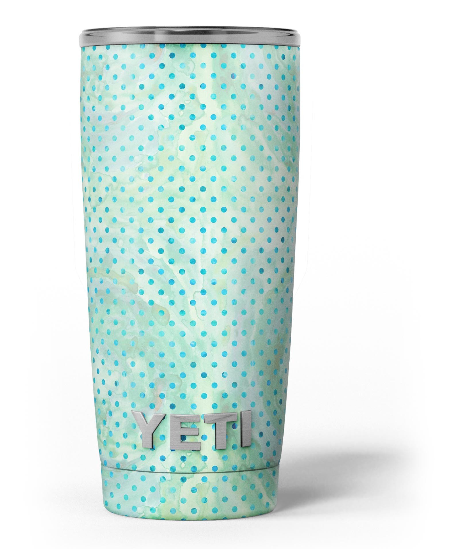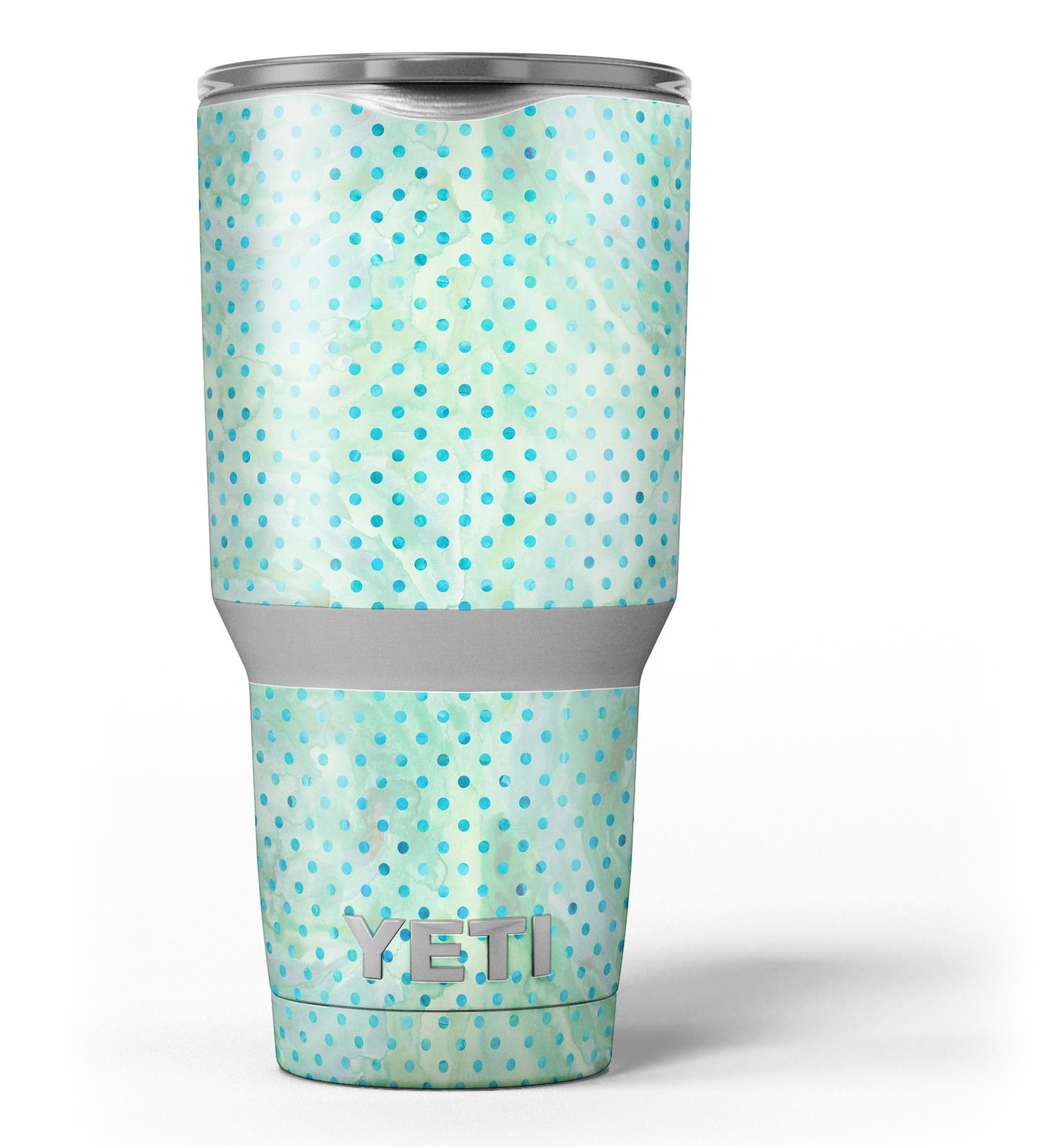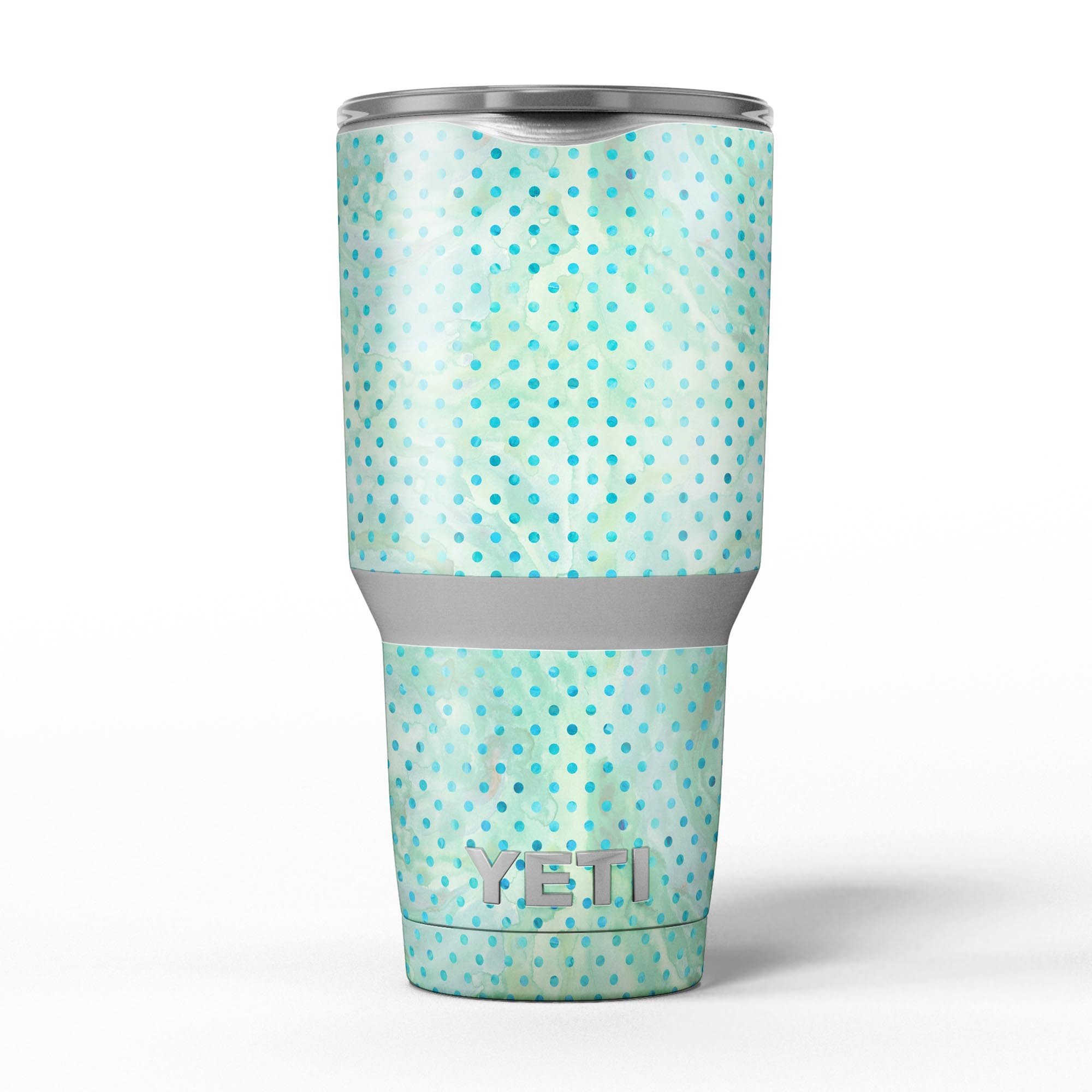 Green and Blue Watercolor Polka Dot Skin Decal Vinyl Wrap for Yeti Cooler, showcasing vibrant colors and unique design.