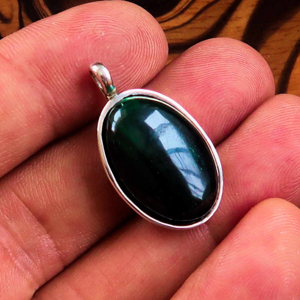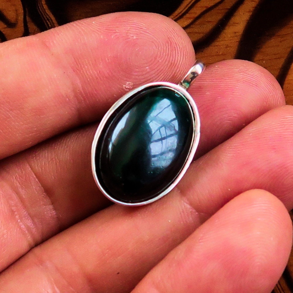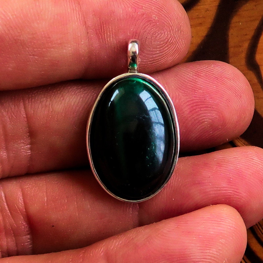 Elevate your jewelry collection with our exquisite Green Malachite Necklace, featuring a stunning Sterling Silver Oval shaped Pendant. This necklace is not just an accessory; it is a statement piece that embodies elegance and sophistication. The natural Malachite Cabochon is beautifully showcased in a minimalist design, making it a perfect addition to any outfit, whether casual or formal.