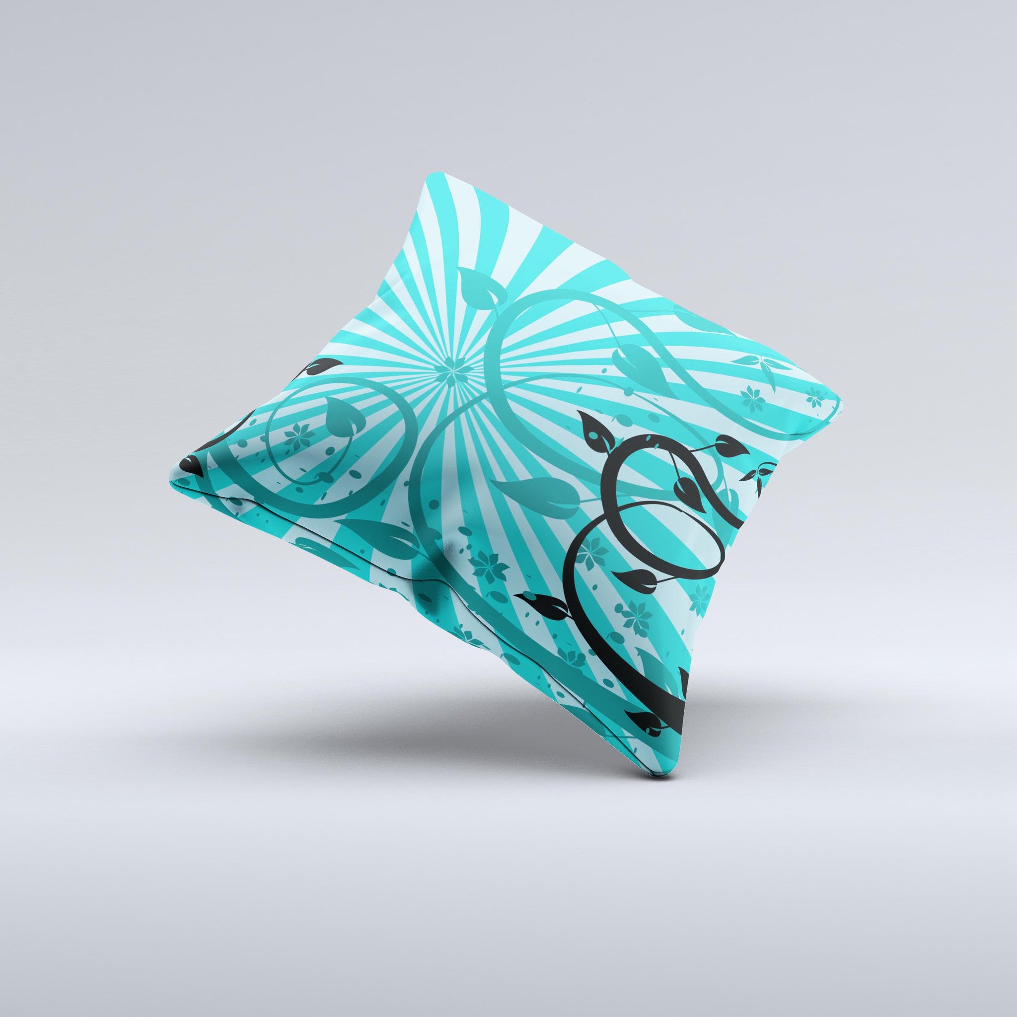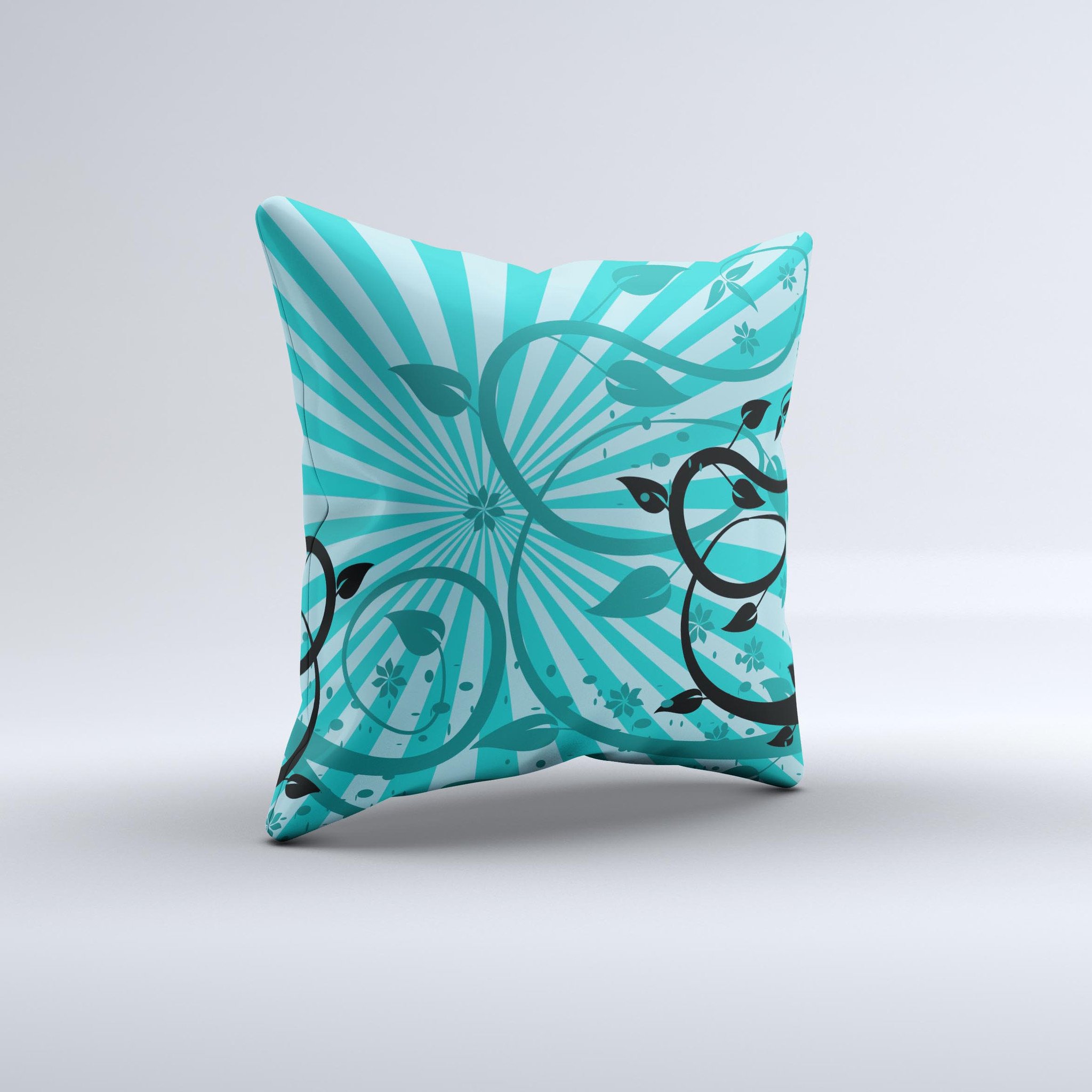 Each pillow graphic is hand produced, which means that no two pillows are exactly alike. This uniqueness is celebrated, as it adds to the charm and character of the product. While some imperfections may occur during the printing process, such as wrinkles or slight variations in design, these are embraced as part of the handmade nature of the pillow. This ensures that your Green Rays with Vines throw pillow is truly one-of-a-kind.