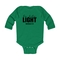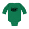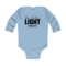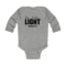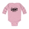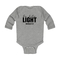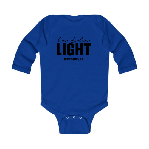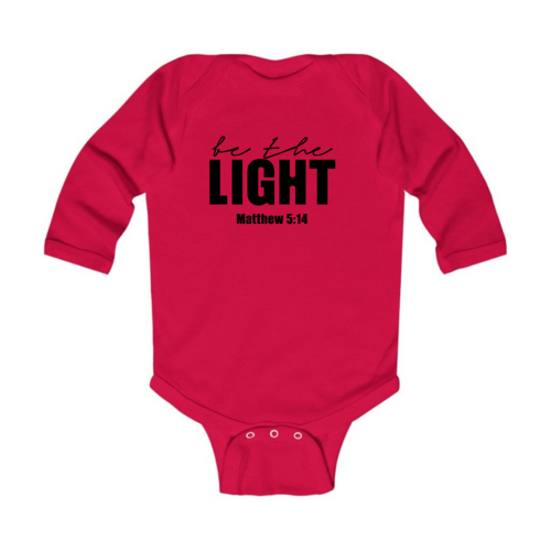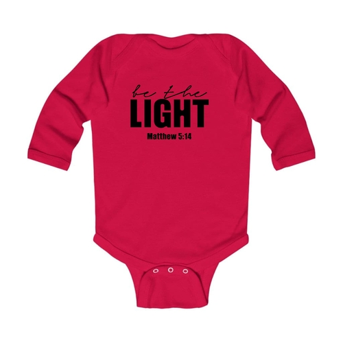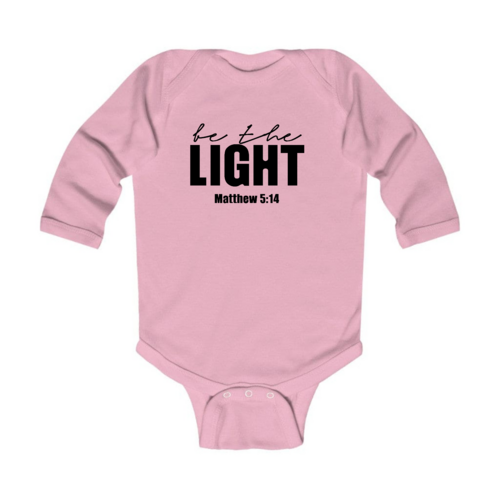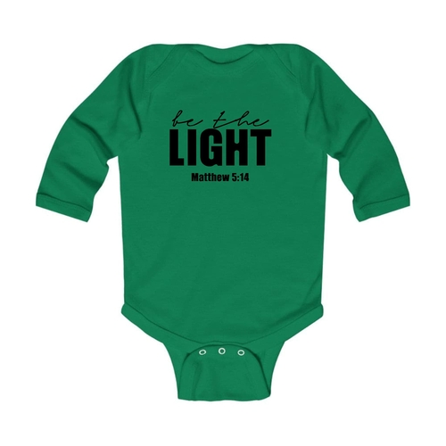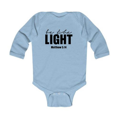Introducing the Infant Long Sleeve Graphic T-shirt, a perfect blend of comfort and style for your little one. This T-shirt features the uplifting 'Be the Light' inspirational art illustration, designed to inspire positivity and joy. Made from 100% combed ringspun cotton, this shirt is not only soft against your baby's delicate skin but also durable enough to withstand the rigors of playtime. Whether worn alone or layered under a jacket, this T-shirt is a versatile addition to your baby's wardrobe.