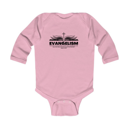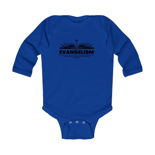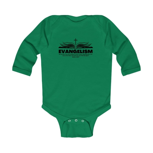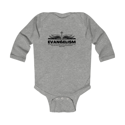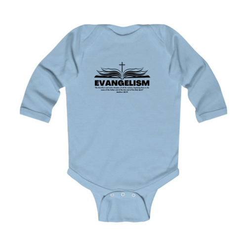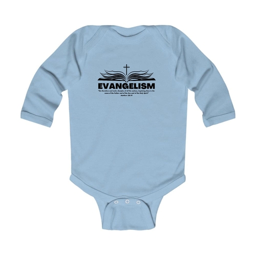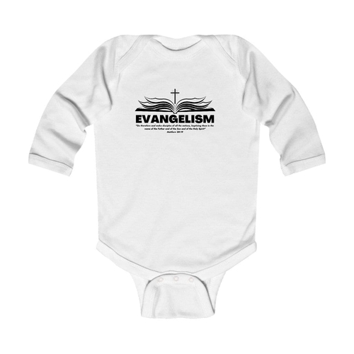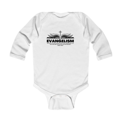 Introducing our Infant Long Sleeve Graphic T-shirt Evangelism - Go Therefore and Make Disciples, a perfect blend of comfort and style for your little one. This adorable t-shirt is designed with the message of evangelism, making it a meaningful addition to your baby's wardrobe. Crafted from 100% combed ringspun cotton, this t-shirt ensures that your infant stays comfortable throughout the day, whether they are playing, napping, or exploring the world around them.