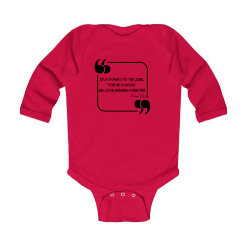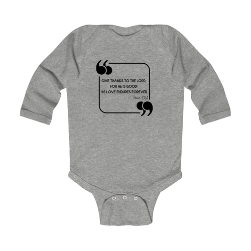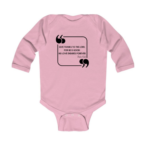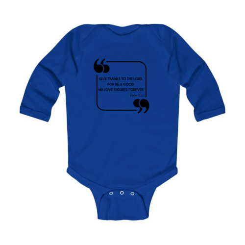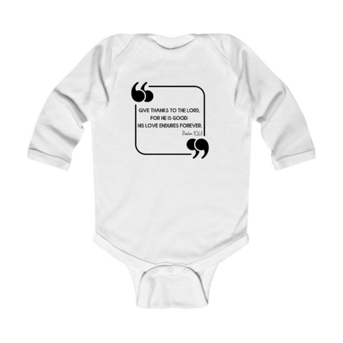 In summary, the Infant Long Sleeve Graphic T-shirt featuring the 'Give Thanks to the Lord' design is a must-have for your baby’s wardrobe. With its combination of comfort, durability, and style, it’s perfect for everyday wear. Treat your little one to this delightful T-shirt and let them express their faith in a fashionable way!