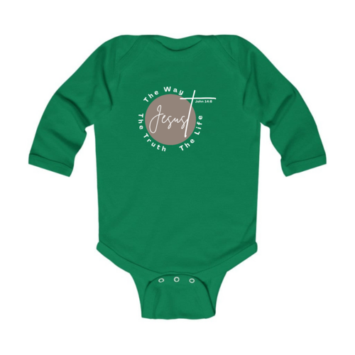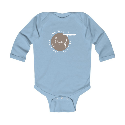 The Infant Long Sleeve Graphic T-shirt, featuring the inspiring phrase 'The Truth The Way The Life', is the perfect blend of comfort and style for your little one. Made from 100% combed ringspun cotton, this t-shirt is designed to keep your baby cozy while allowing for maximum movement during playtime. The soft fabric is gentle on your baby's skin, making it an ideal choice for everyday wear.