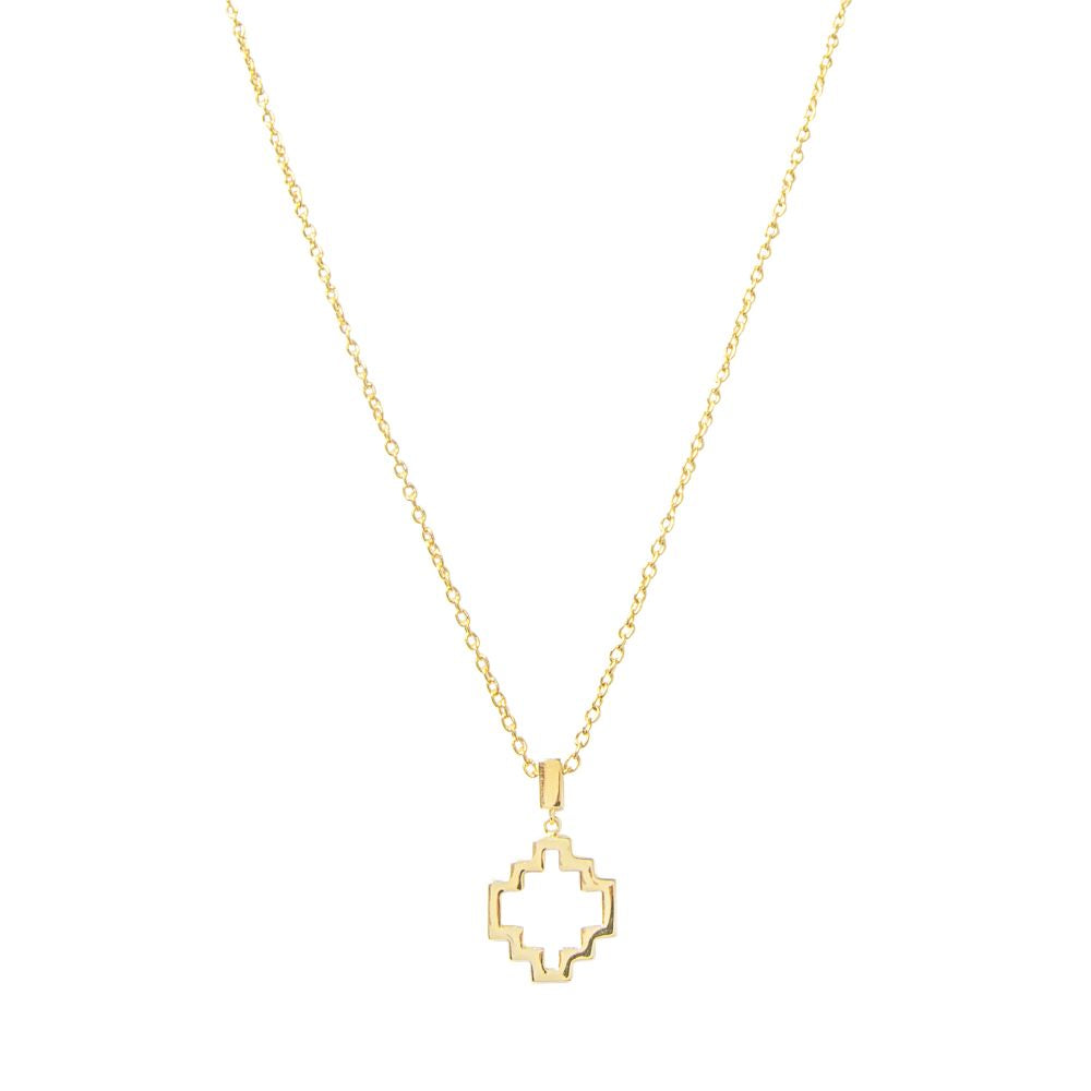 This pendant features a unique silhouette that reflects the geometric patterns found in the step-wells. The craftsmanship involved in creating this piece is evident in its smooth finish and elegant lines. The pendant hangs gracefully from a delicate chain, making it suitable for both casual and formal occasions.