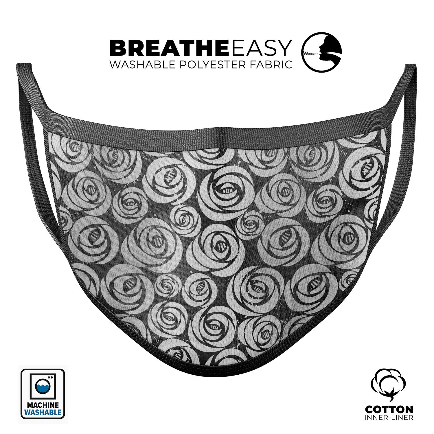 Introducing the Karamfila Silver & Pink Marble V9 mouth cover, a stylish and functional face mask designed for everyday use. This reusable 3D face mask is made in the USA, ensuring high-quality craftsmanship and materials. The mask features a unique dye-sublimation printing technique that allows for vibrant and long-lasting designs, making it not only a protective accessory but also a fashion statement.