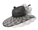 Large black sinamay racing hat covered in black & white checkerboard crinoline. With addition of large hand-made crinoline flower and black feathers, it will be a perfect racing accessory for Melbourne Cup, Ascot or any special event.
