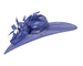Made from fine sinamay, this large royal blue racing hat features wide brim and large elegant decoration with two-tone feather flower. A perfect racing accessory for Melbourne Cup, Ascot or any special event.