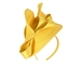 Large yellow twisted plate decorated with silk abaca bow. Hand made in Melbourne by our skillful milliners, this headpiece will be a crown jewel of your spring racing outfit.