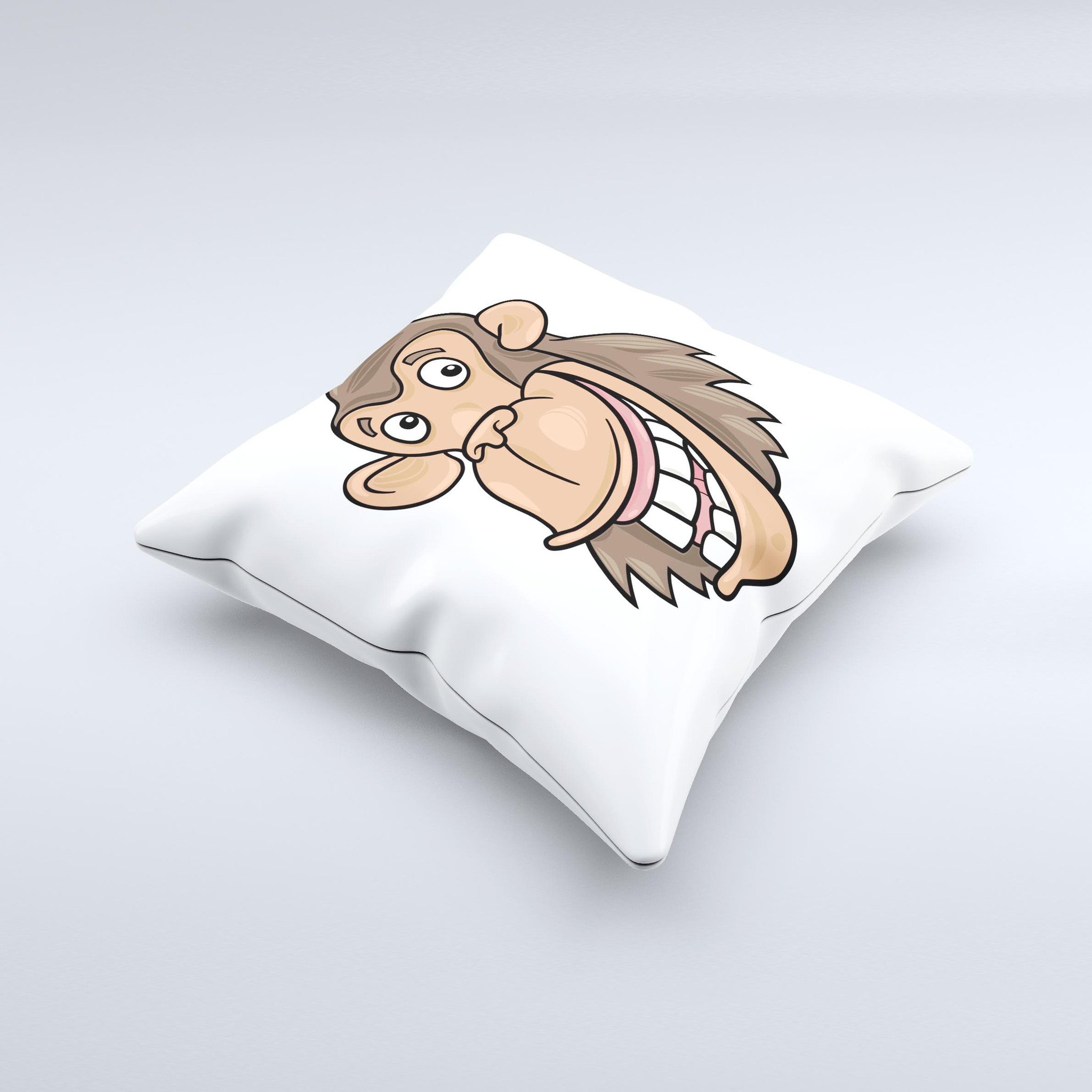 Each pillow graphic is hand produced, which means that some imperfections may occur during the printing process. We embrace these unique characteristics as they add to the charm and individuality of each pillow. The Laughing Vector Chimp design is not only playful but also serves as a conversation starter, making it a perfect accent piece for your sofa, bed, or favorite reading nook.