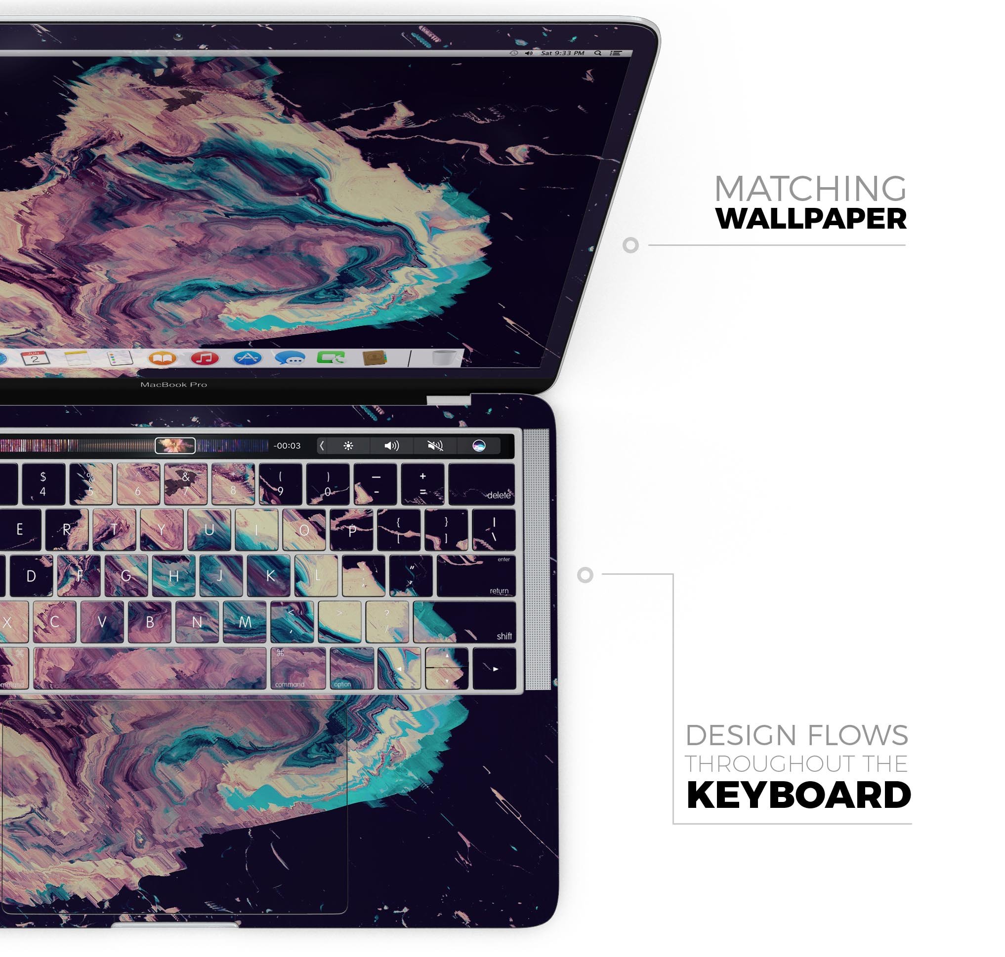The Liquid Abstract Paint Remix V18 skin features a bubble-free installation process, making it incredibly easy to apply. You don’t need to worry about air bubbles ruining the look of your MacBook; the patented Air-Release adhesive backing ensures a smooth application every time. Simply peel, stick, and enjoy your newly styled device in seconds.