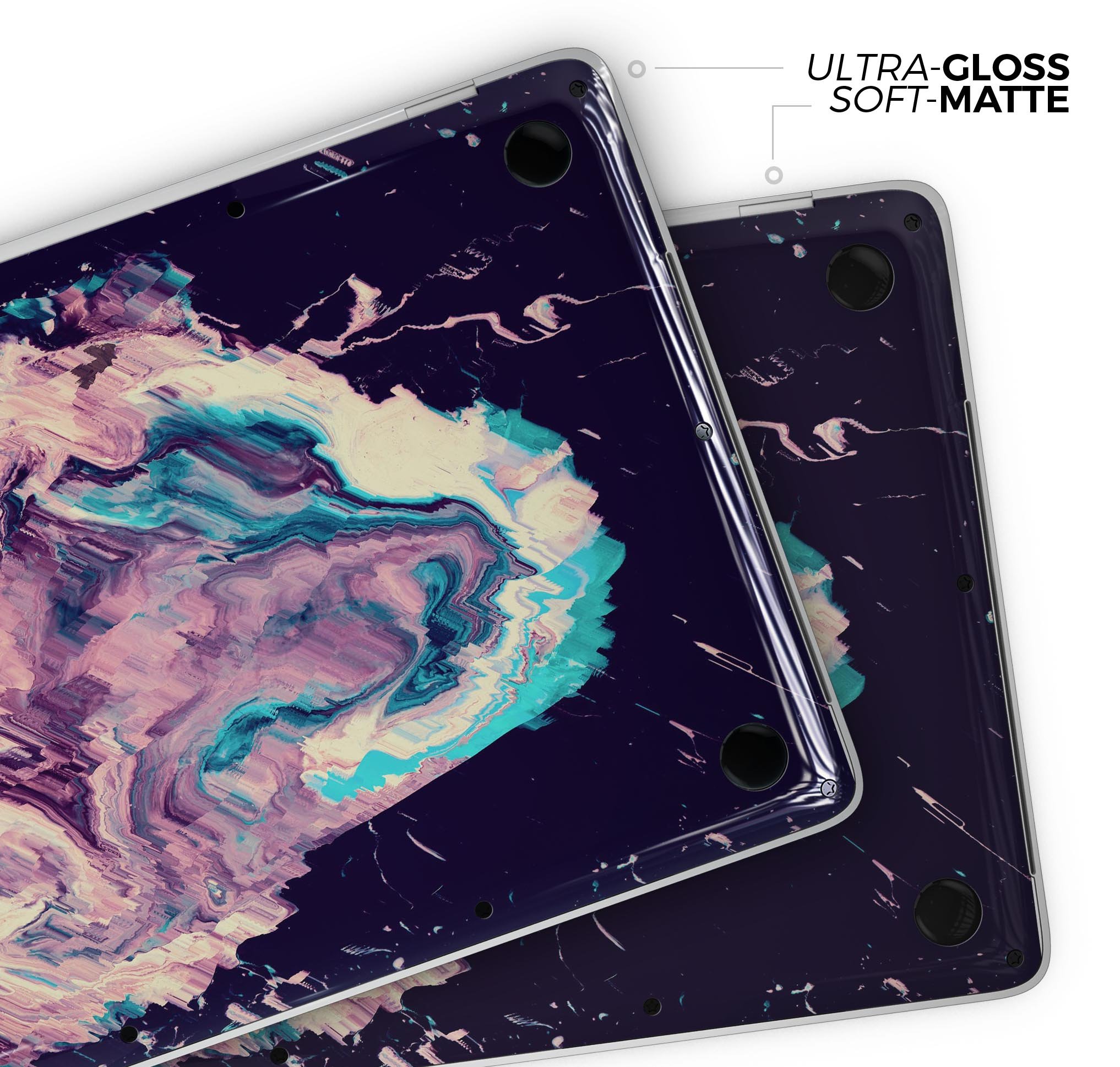 Choose between an ultra-gloss or soft-matte finish to match your personal style. The ultra-gloss finish offers a shiny, reflective surface that enhances the vibrant colors of the Liquid Abstract Paint design, while the soft-matte finish provides a sleek, understated look that feels great to the touch. Whichever option you choose, your MacBook will stand out from the crowd.