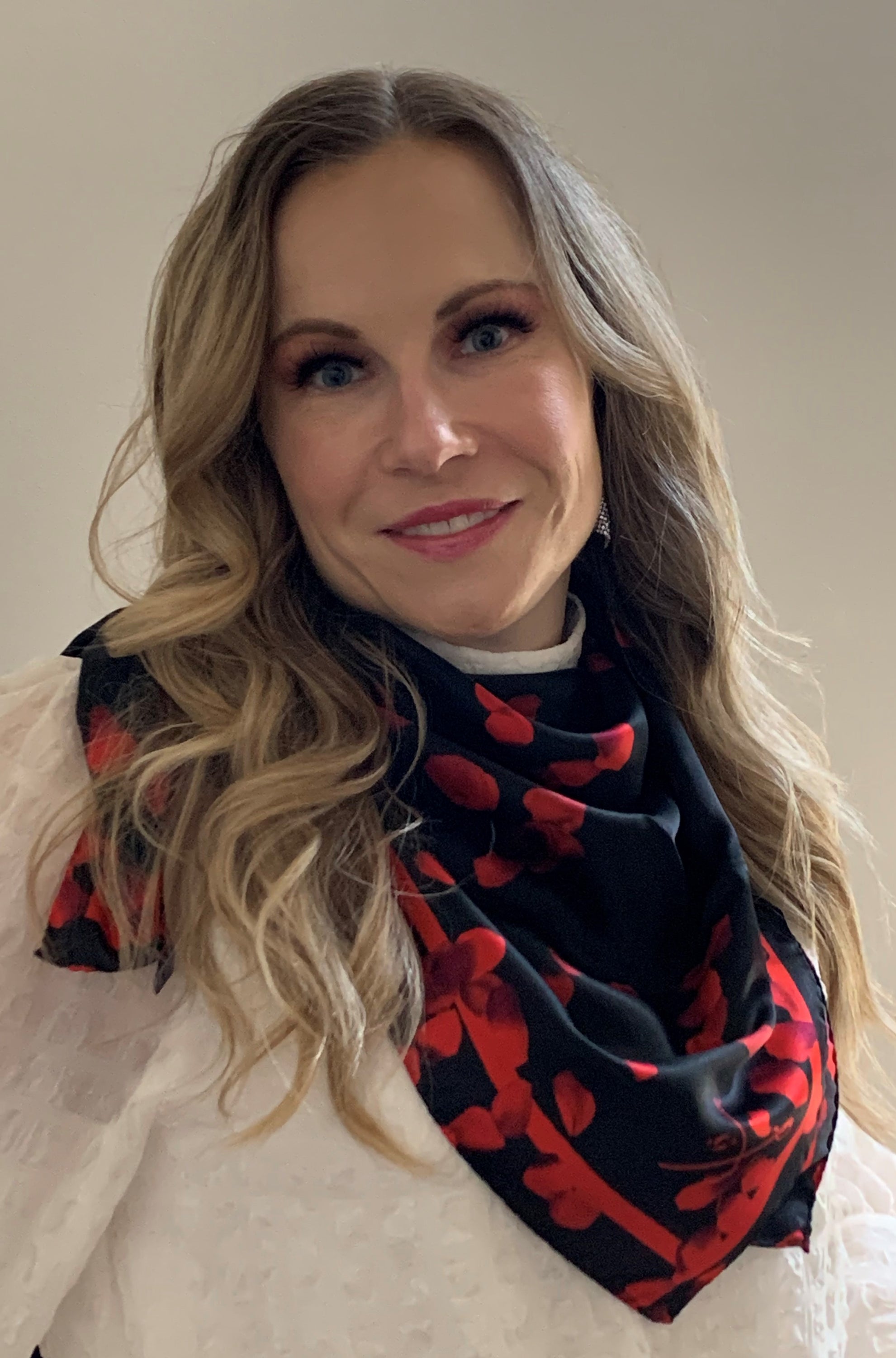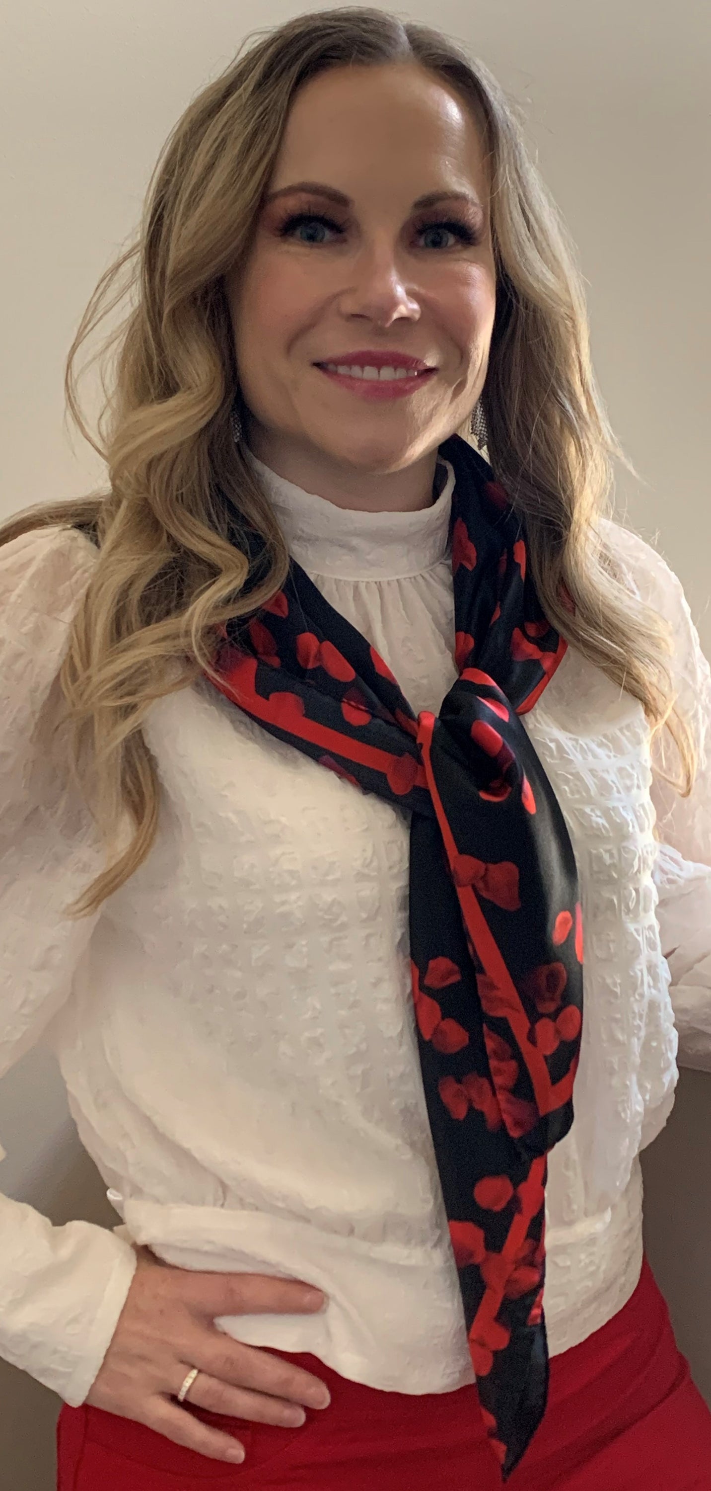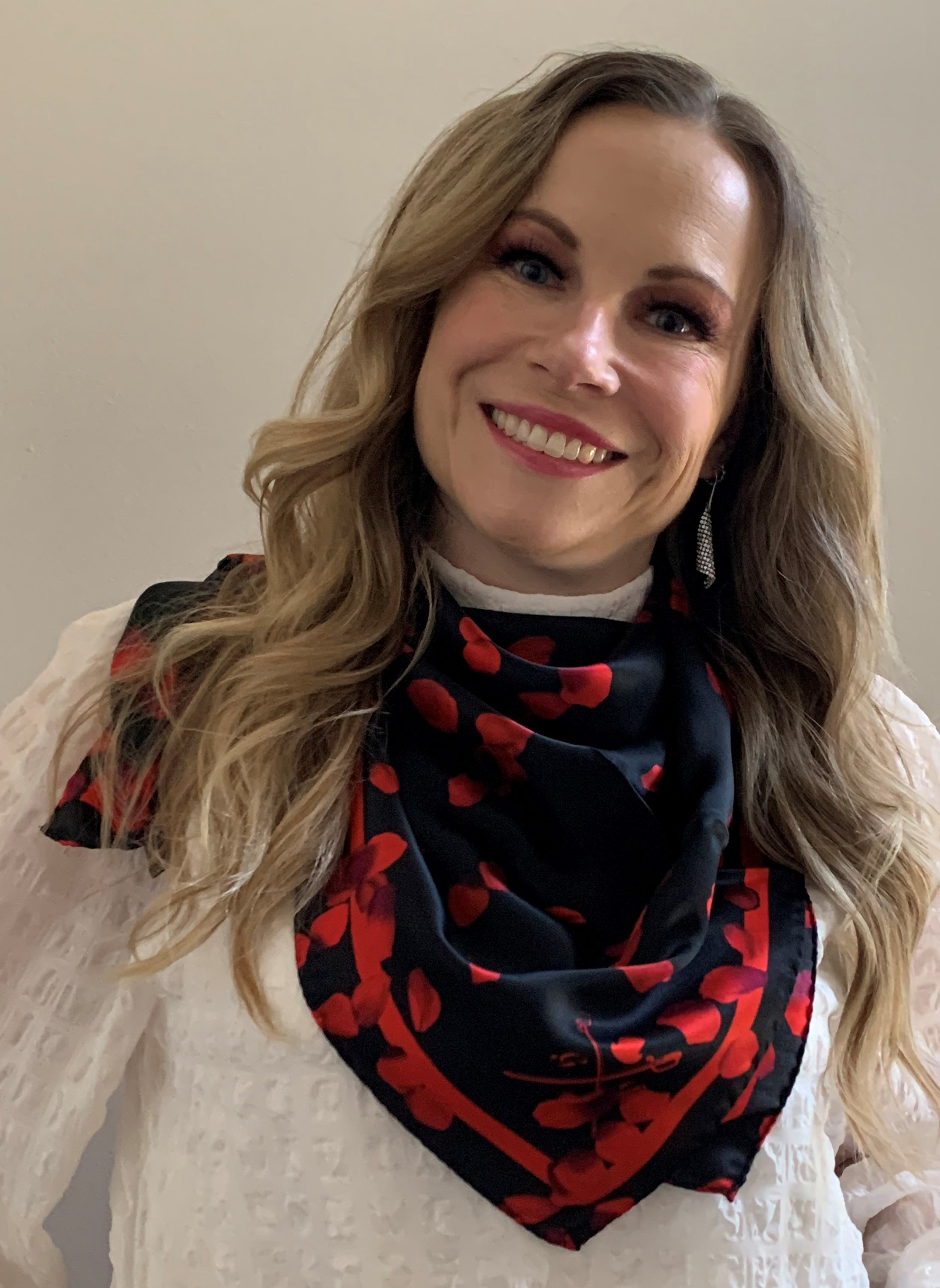 Love Knows No Borders Ladies Silk Scarf featuring vibrant rose petal design on luxurious Italian silk.