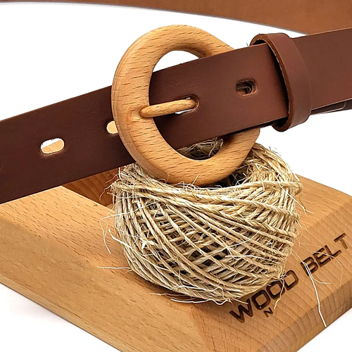 High-quality split leather. A unique combination of the wooden buckle with a 30 or 40-mm wide strap is always in fashion.