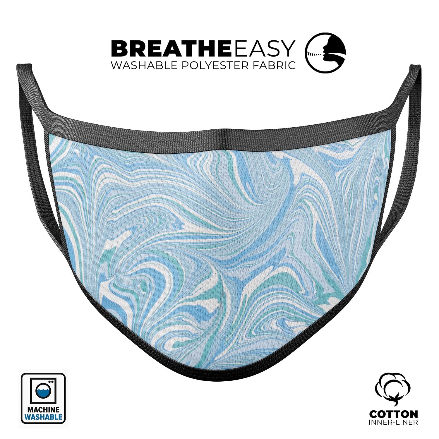 Marbleized Swirling Blues v52 face mask, showcasing vibrant blue swirls on a comfortable 3D design, made in the USA.