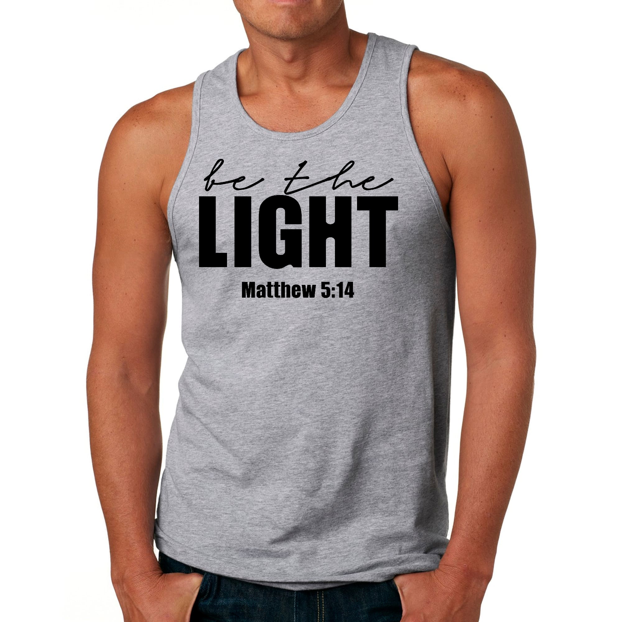 With its eye-catching graphic design, this tank top not only serves as a functional piece of workout gear but also as a source of inspiration. The 'Be The Light' message encourages positivity and motivation, making it a great addition to your fitness wardrobe. The classic fit ensures that it flatters all body types, allowing you to showcase your physique while staying stylish.