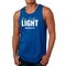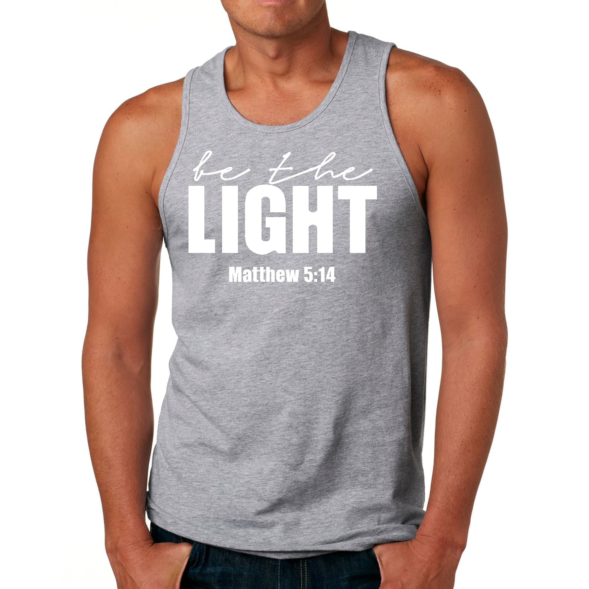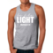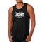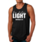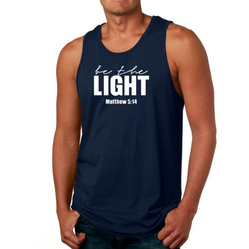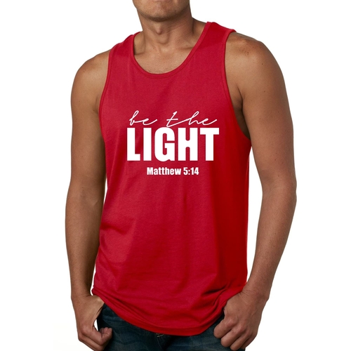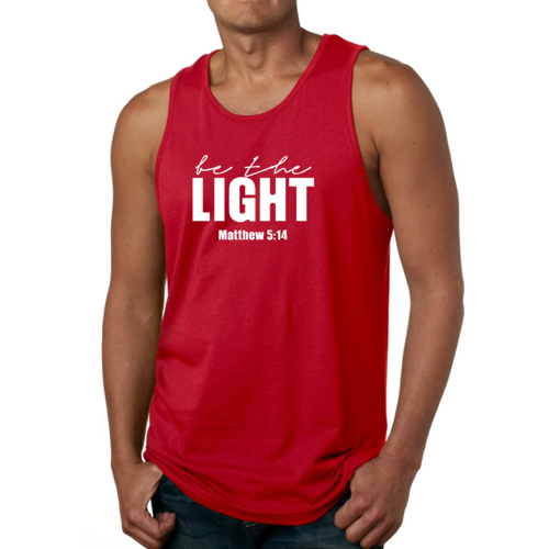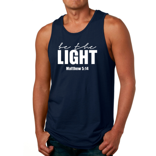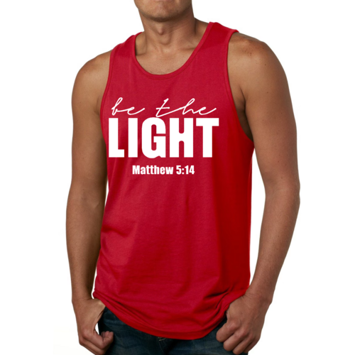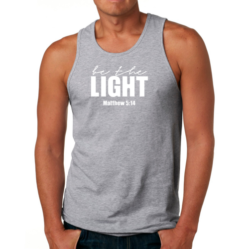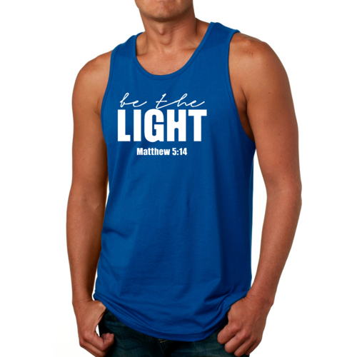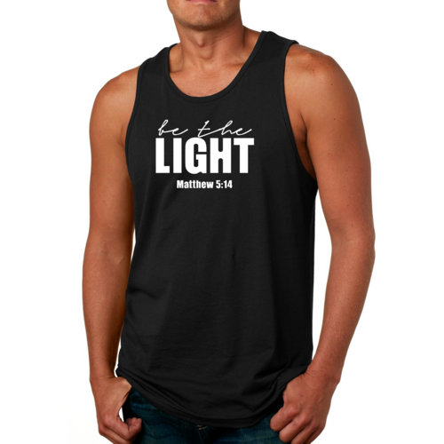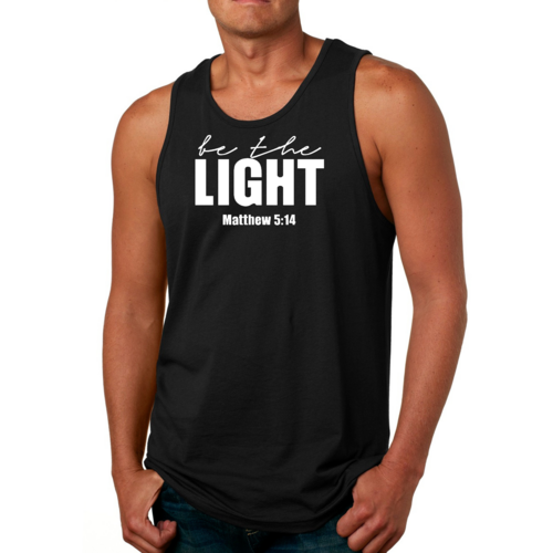 Introducing the Men's Fitness Tank Top Graphic T-shirt, a perfect blend of style and comfort designed for those who strive to be their best. This tank top features the uplifting message 'Be The Light' illustrated in an eye-catching graphic art style, making it not just a piece of clothing but a source of motivation for your fitness journey.