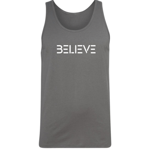 The Men's Fitness Tank Top Graphic T-shirt with a Believe White Print is the perfect addition to your workout wardrobe. Designed for comfort and style, this tank top is made from high-quality preshrunk cotton, ensuring that it retains its softness and size even after multiple washes. Whether you're hitting the gym, going for a run, or just lounging at home, this tank top provides the ultimate comfort and breathability.