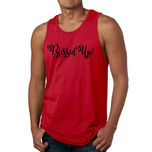 Introducing our Men's Fitness Tank Top Graphic T-shirt featuring the inspiring 'Blessed Up' quote in a sleek black design. This tank top is not just a piece of clothing; it's a statement of motivation and positivity that resonates with fitness enthusiasts. Made from high-quality preshrunk cotton, this tank top ensures that you stay comfortable during your workouts while retaining its shape and softness even after multiple washes.