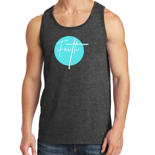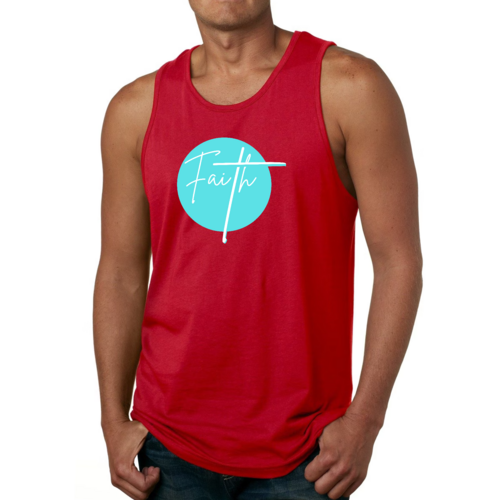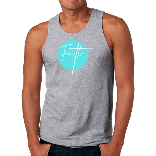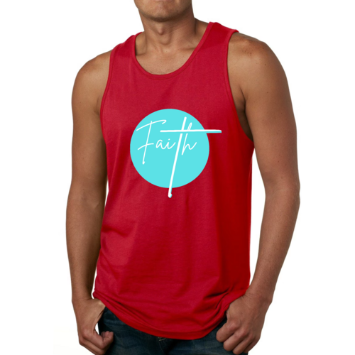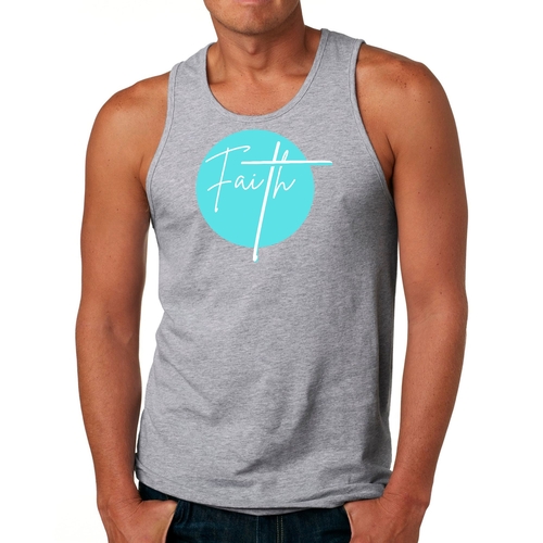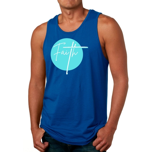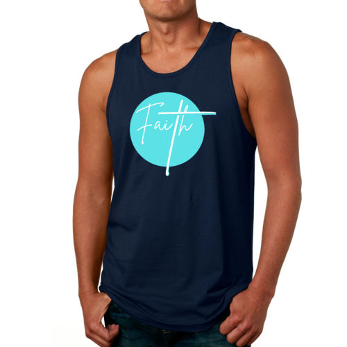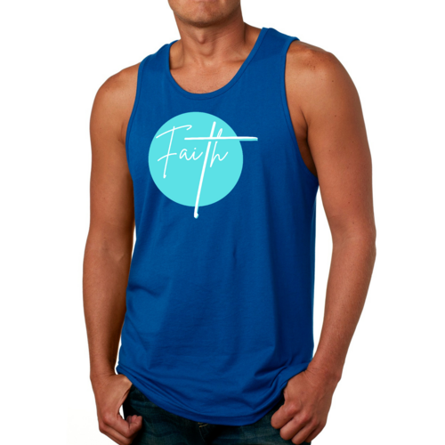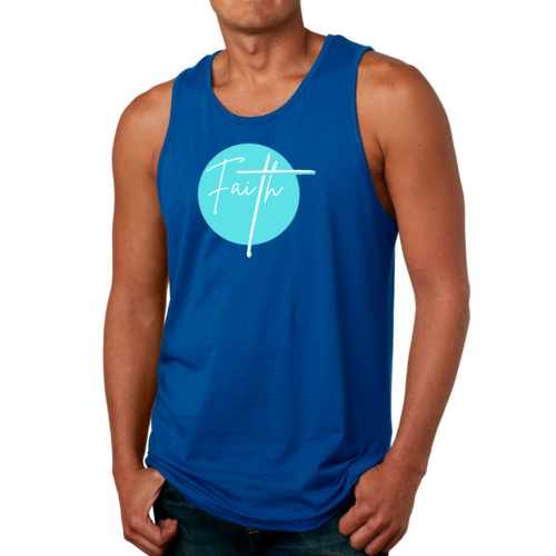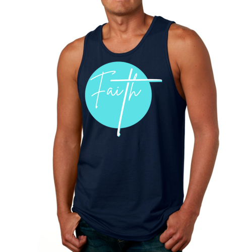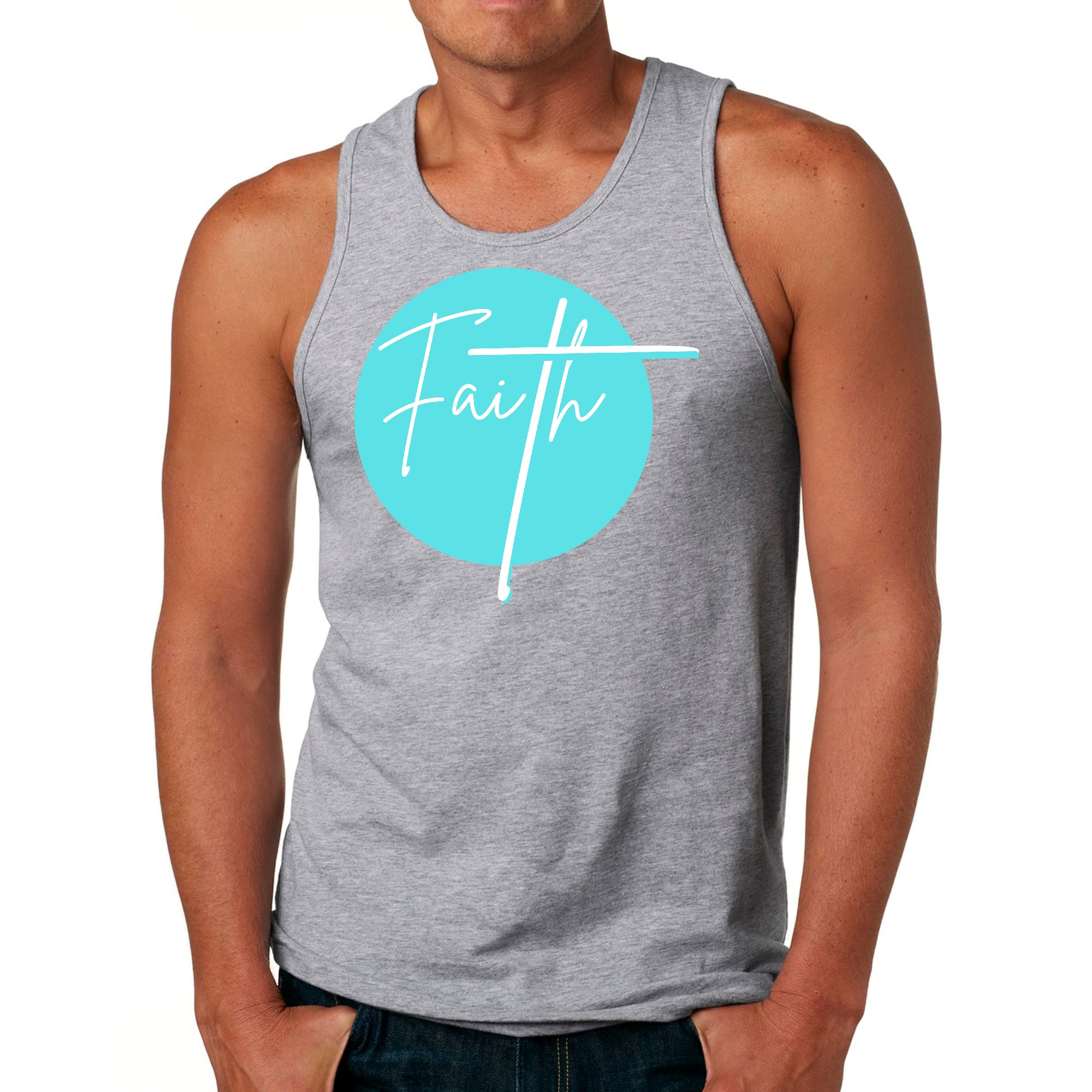Introducing our Men's Fitness Tank Top Graphic T-Shirt Faith - Christian Affirmation, designed for those who want to express their faith while staying comfortable during workouts. This tank top features a vibrant cyan blue and white color scheme that not only looks great but also serves as a reminder of your beliefs. Made from high-quality preshrunk cotton, this fitness tee ensures that you enjoy a soft feel against your skin, even after multiple washes.