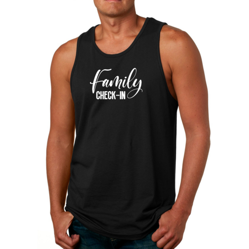 Introducing our Men's Fitness Tank Top Graphic T-shirt featuring a unique Family Check-in Illustration, designed for those who value both style and comfort during their workouts. This tank top is crafted from high-quality preshrunk cotton, ensuring that it retains its softness and size even after multiple washes. Whether you're hitting the gym, going for a run, or simply lounging at home, this tank top is the perfect addition to your wardrobe.