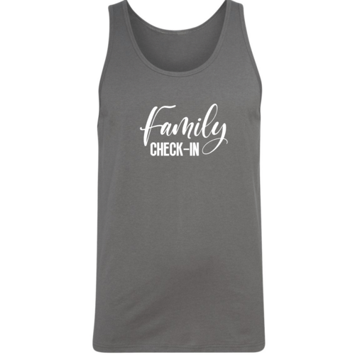 What sets this tank top apart is its eye-catching Family Check-in Illustration. This graphic design not only adds a fun element to your fitness attire but also makes a statement about the importance of family and togetherness. It's a great conversation starter and a perfect way to express your personality while staying active.