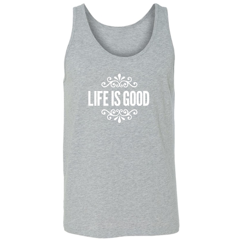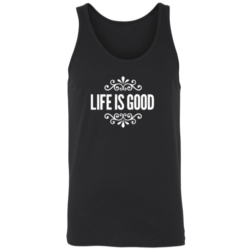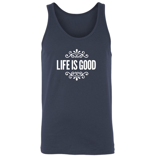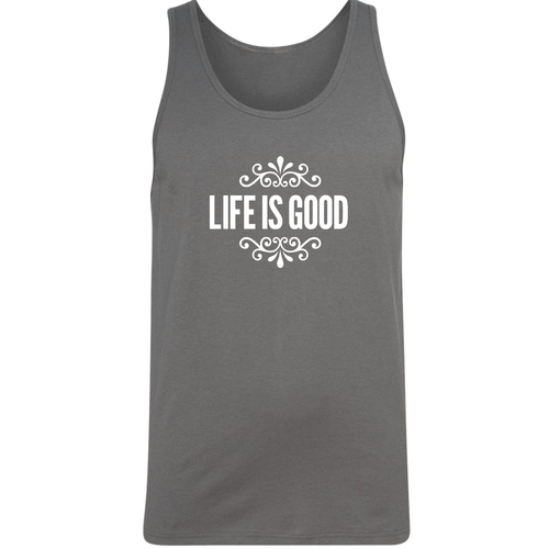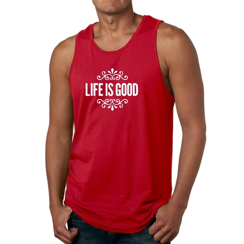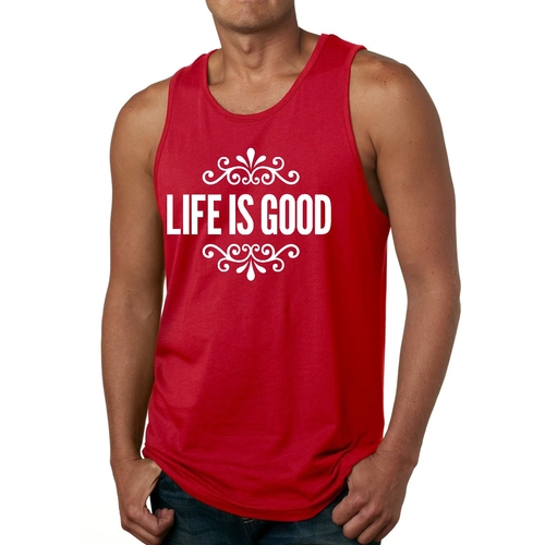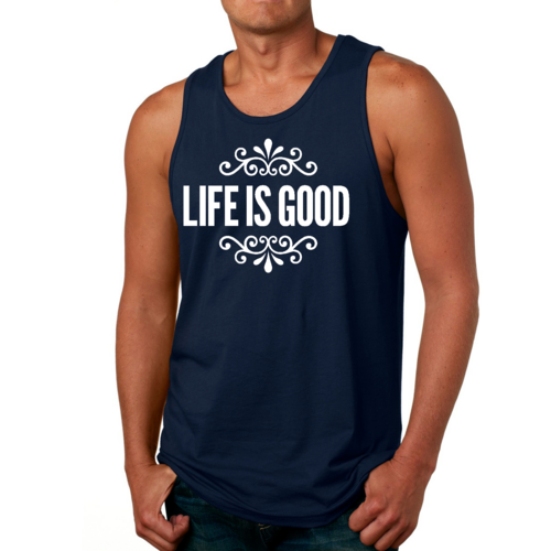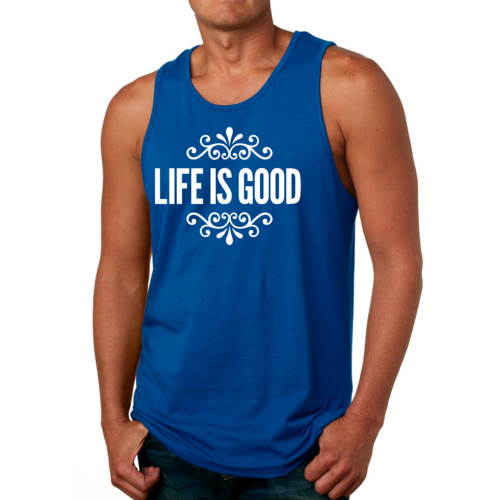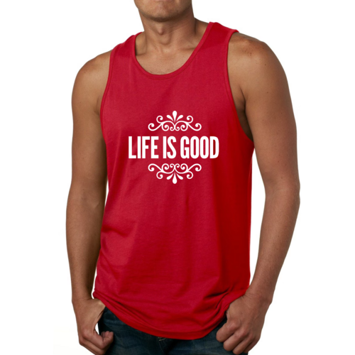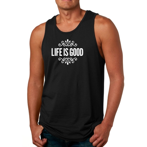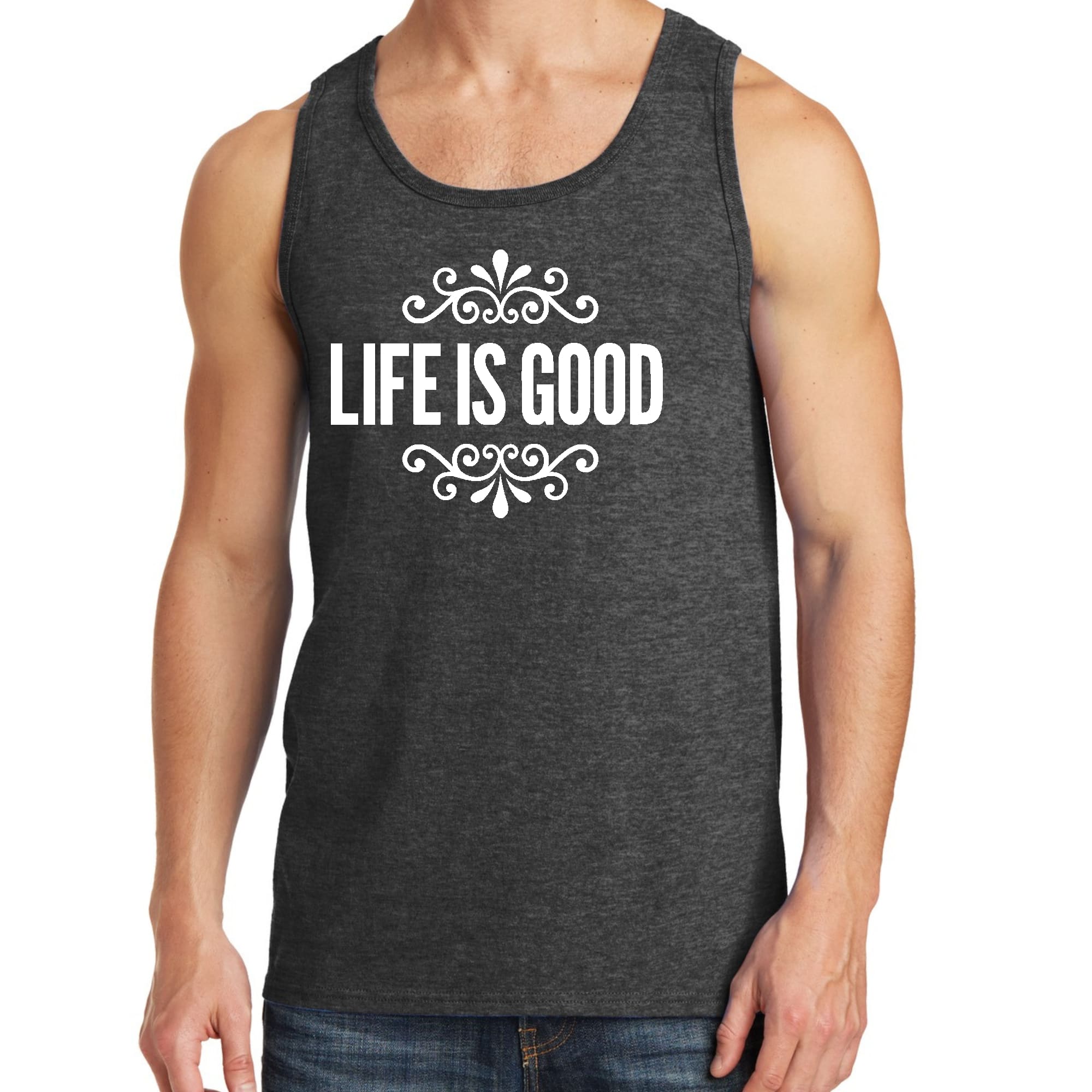 Introducing our Men's Fitness Tank Top Graphic T-Shirt featuring the uplifting 'Life is Good' word art illustration. This stylish and comfortable fitness tee is designed for those who value both fashion and functionality. Made from high-quality preshrunk cotton, this tank top ensures that it retains its softness and size even after multiple washes, making it a reliable addition to your workout wardrobe.