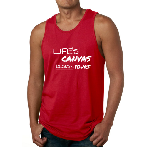 Introducing the Men's Fitness Tank Top Graphic T-Shirt with the inspiring Life's a Canvas design. This motivational tee is perfect for fitness enthusiasts who want to express their aspirations while staying comfortable during workouts. Made from high-quality preshrunk cotton, this tank top ensures that you enjoy a soft feel against your skin, making it an ideal choice for both intense training sessions and casual outings.
