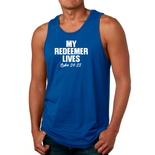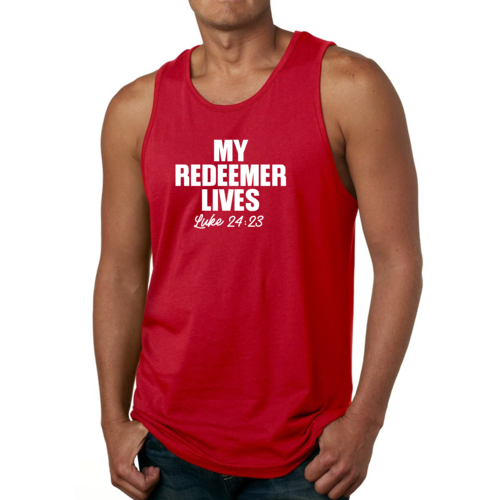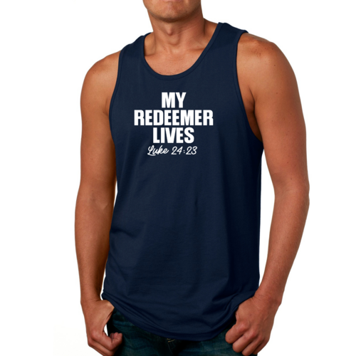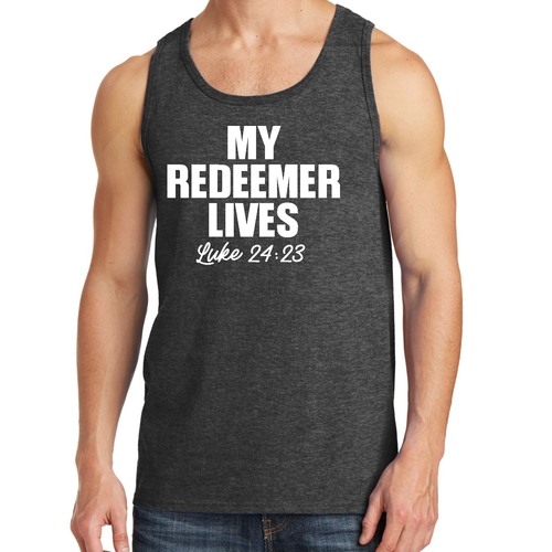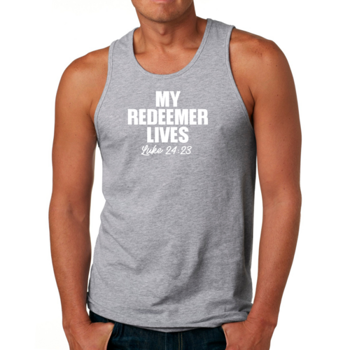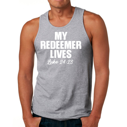 Featuring a bold 'My Redeemer Lives' graphic, this tank top is perfect for those who want to express their faith while staying fashionable. The design is printed with high-quality inks that resist fading, ensuring that your message remains vibrant wash after wash. Whether you're hitting the gym, going for a run, or just hanging out with friends, this tank top makes a statement.