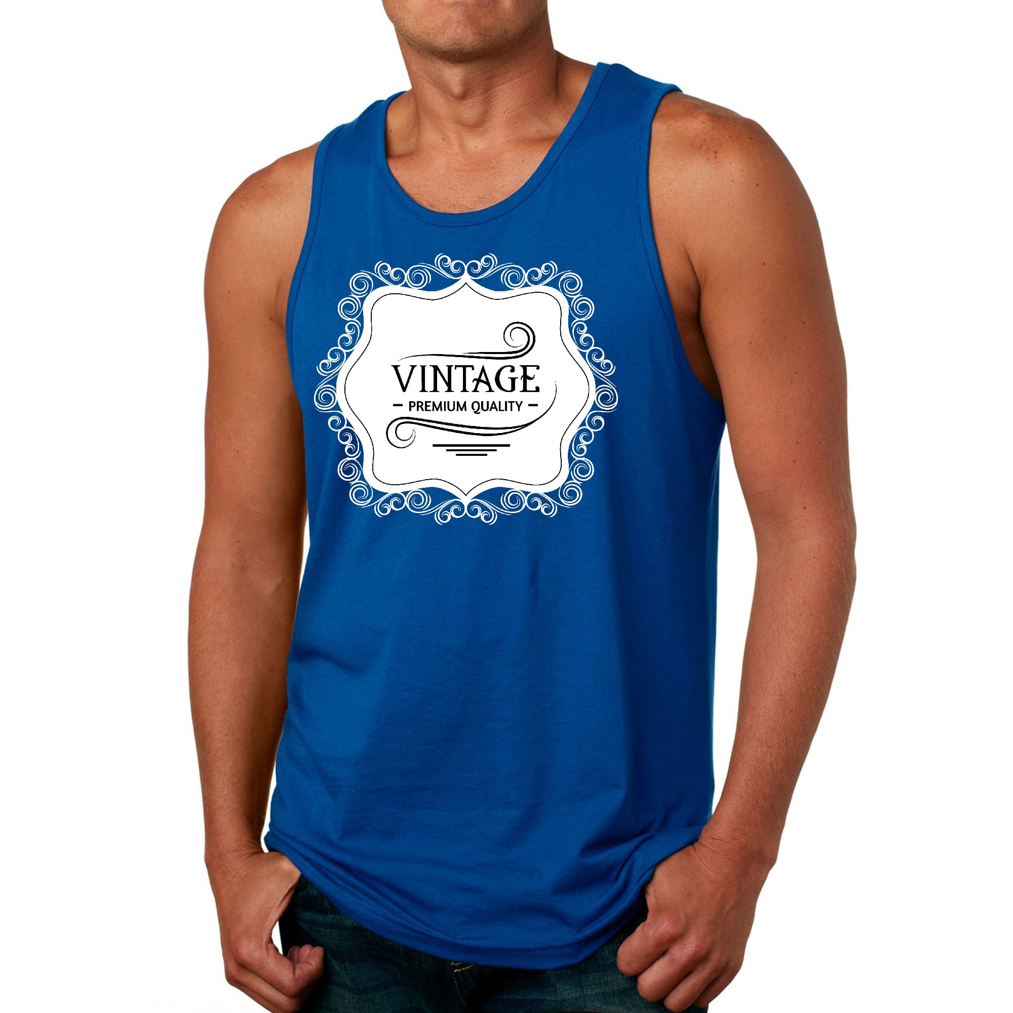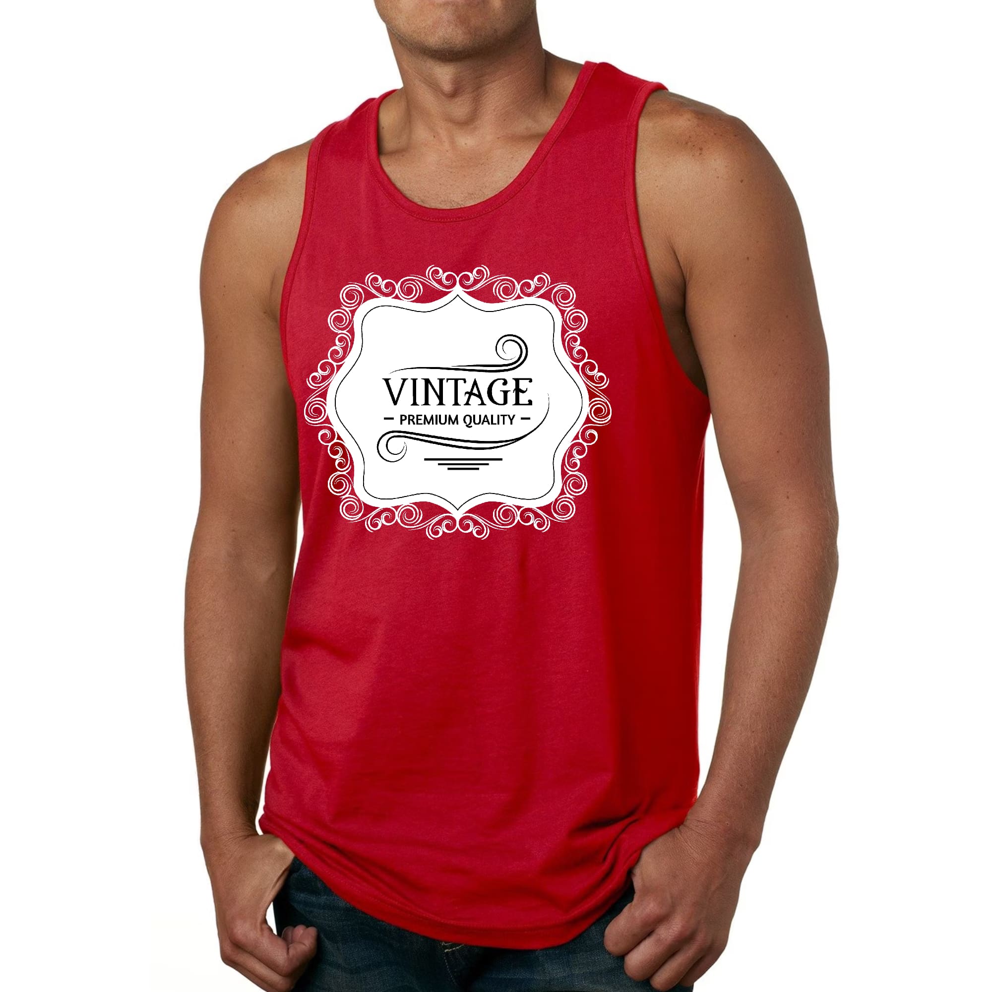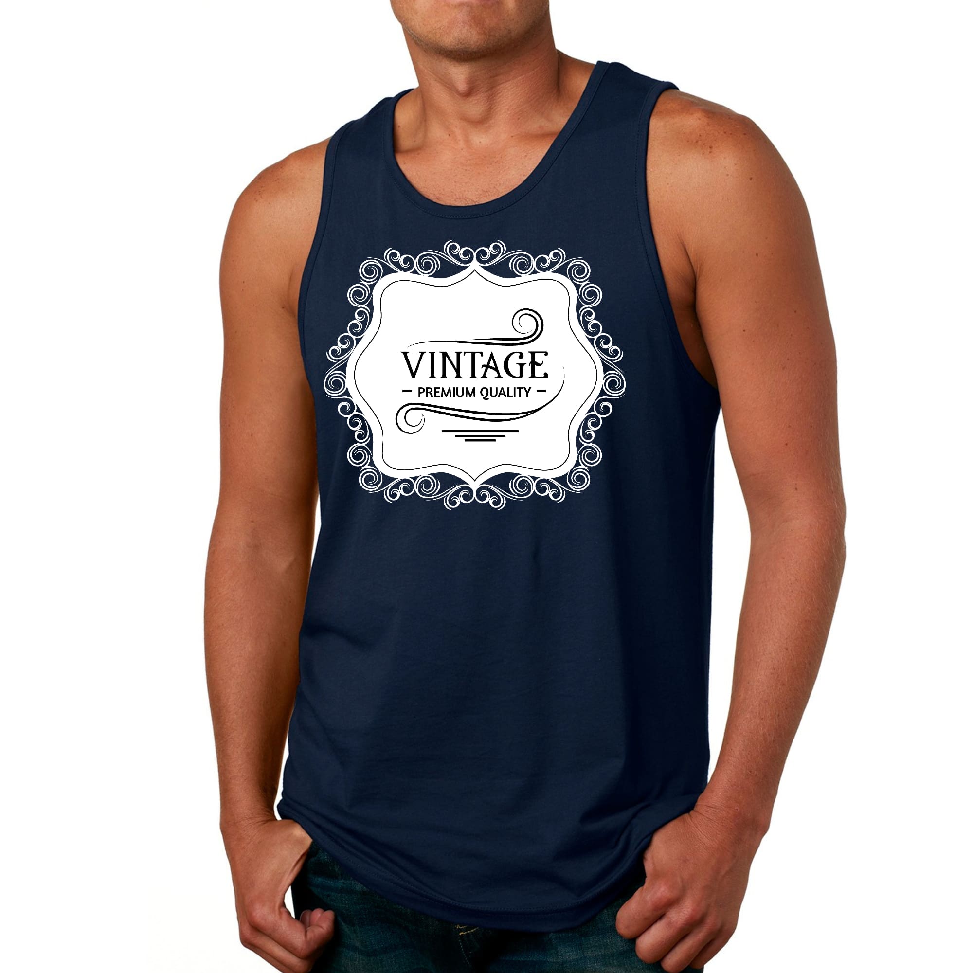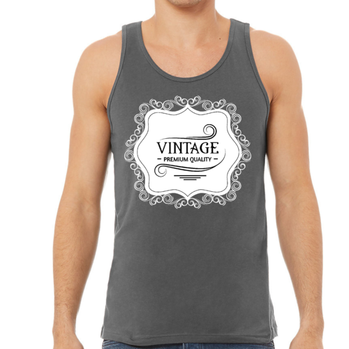 Introducing our Men's Fitness Tank Top Graphic T-shirt, a perfect blend of style and comfort designed for fitness enthusiasts and casual wearers alike. Made from premium quality preshrunk cotton, this tank top ensures that you not only look good but also feel great during your workouts or daily activities. The vintage black illustration adds a unique touch, making it a standout piece in your wardrobe.
