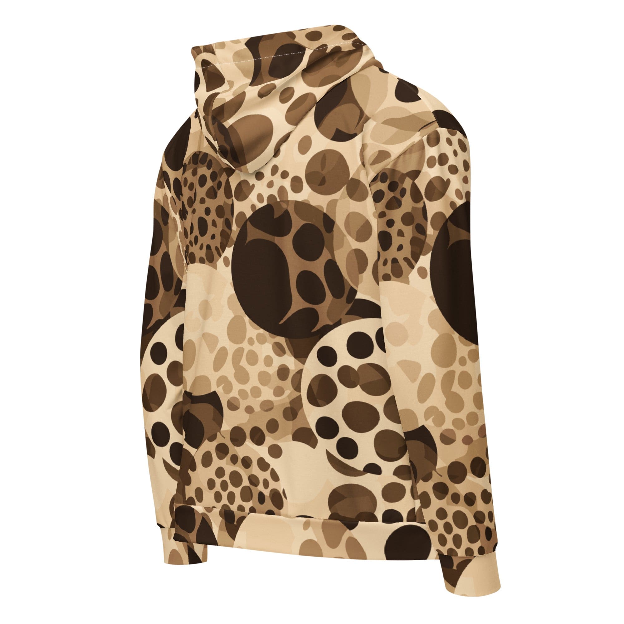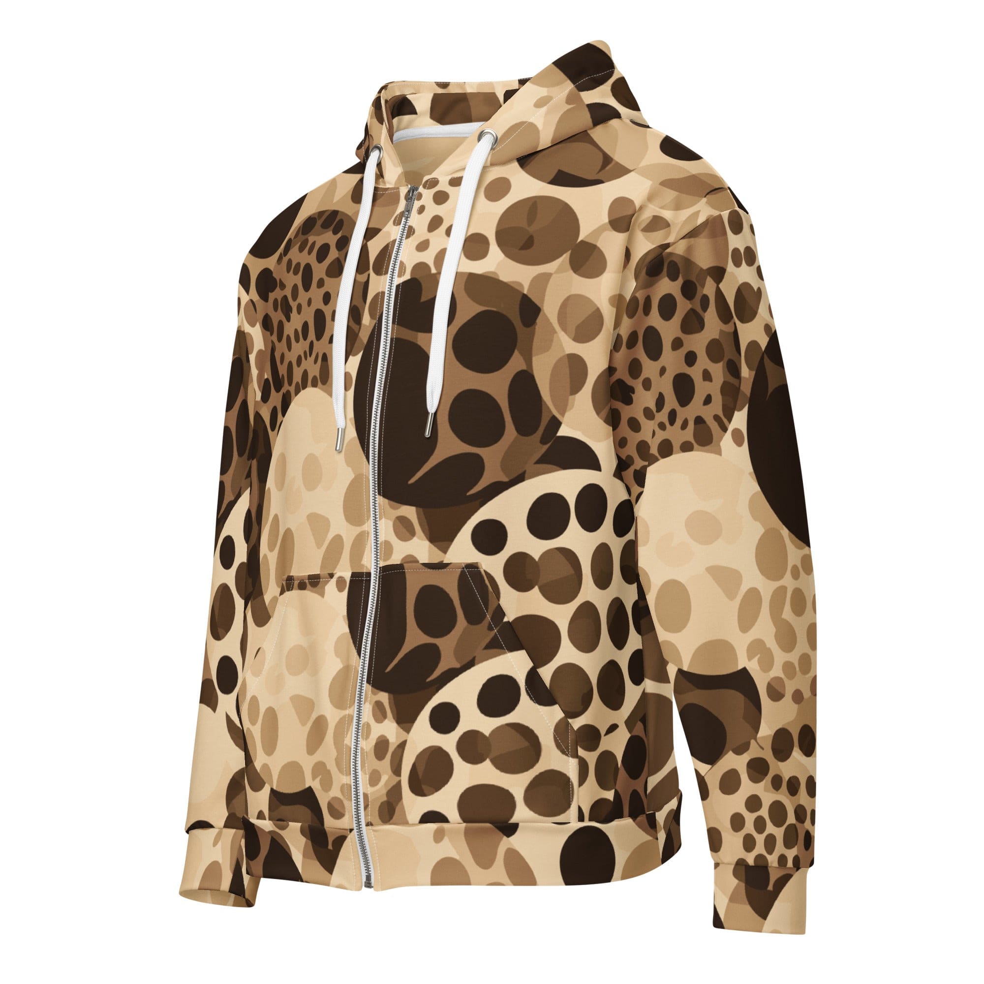 Whether you're heading to the gym, running errands, or just relaxing at home, this hoodie is versatile enough to suit any occasion. Its comfortable fit and stylish design make it easy to pair with jeans, joggers, or shorts, allowing you to create a variety of looks effortlessly. Embrace the perfect combination of comfort and style with the Mens Full Zip Graphic Hoodie in Beige Brown Spotted Print.