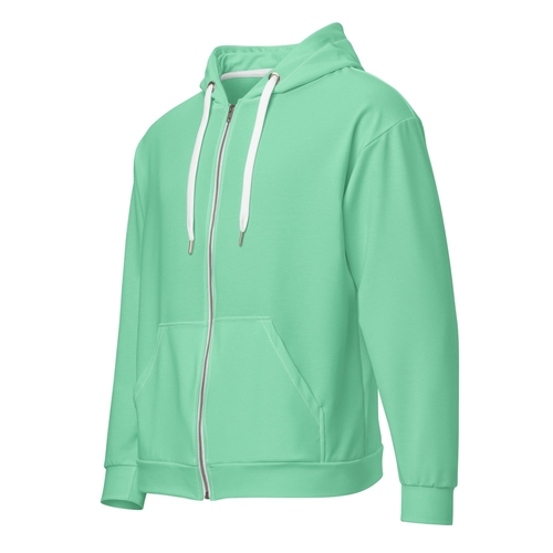 Introducing the Men's Full Zip Graphic Hoodie in a refreshing Seafoam Green, a perfect blend of comfort and style for your everyday wardrobe. This hoodie is designed to provide a relaxed fit, making it an ideal choice for casual outings, lounging at home, or even light outdoor activities. Crafted with care, this zip hoodie is not just a piece of clothing; it's a statement of sustainability and fashion.