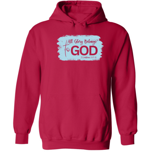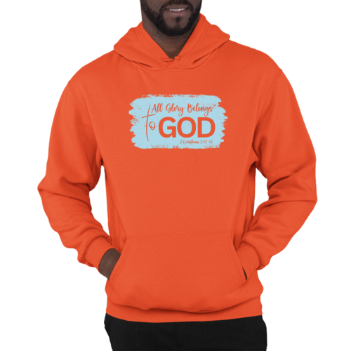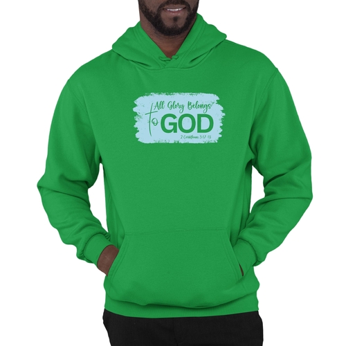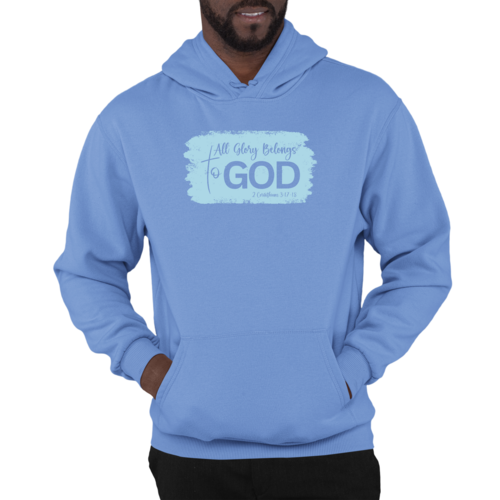 The eye-catching graphic on the hoodie features the phrase 'All Glory Belongs to God,' making it an ideal choice for individuals who want to express their faith through their fashion choices. The light blue color adds a refreshing touch, making it versatile enough to pair with various outfits. Whether you're heading to a casual gathering, running errands, or simply lounging at home, this hoodie will keep you looking stylish and feeling comfortable.