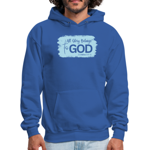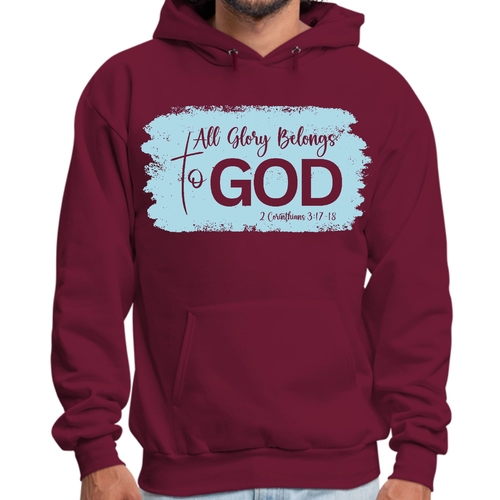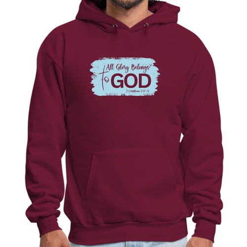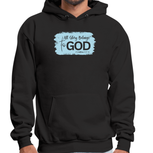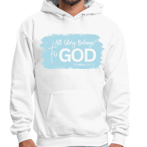 Light blue men's graphic hoodie featuring 'All Glory Belongs to God' illustration, perfect for casual wear and expressing faith.