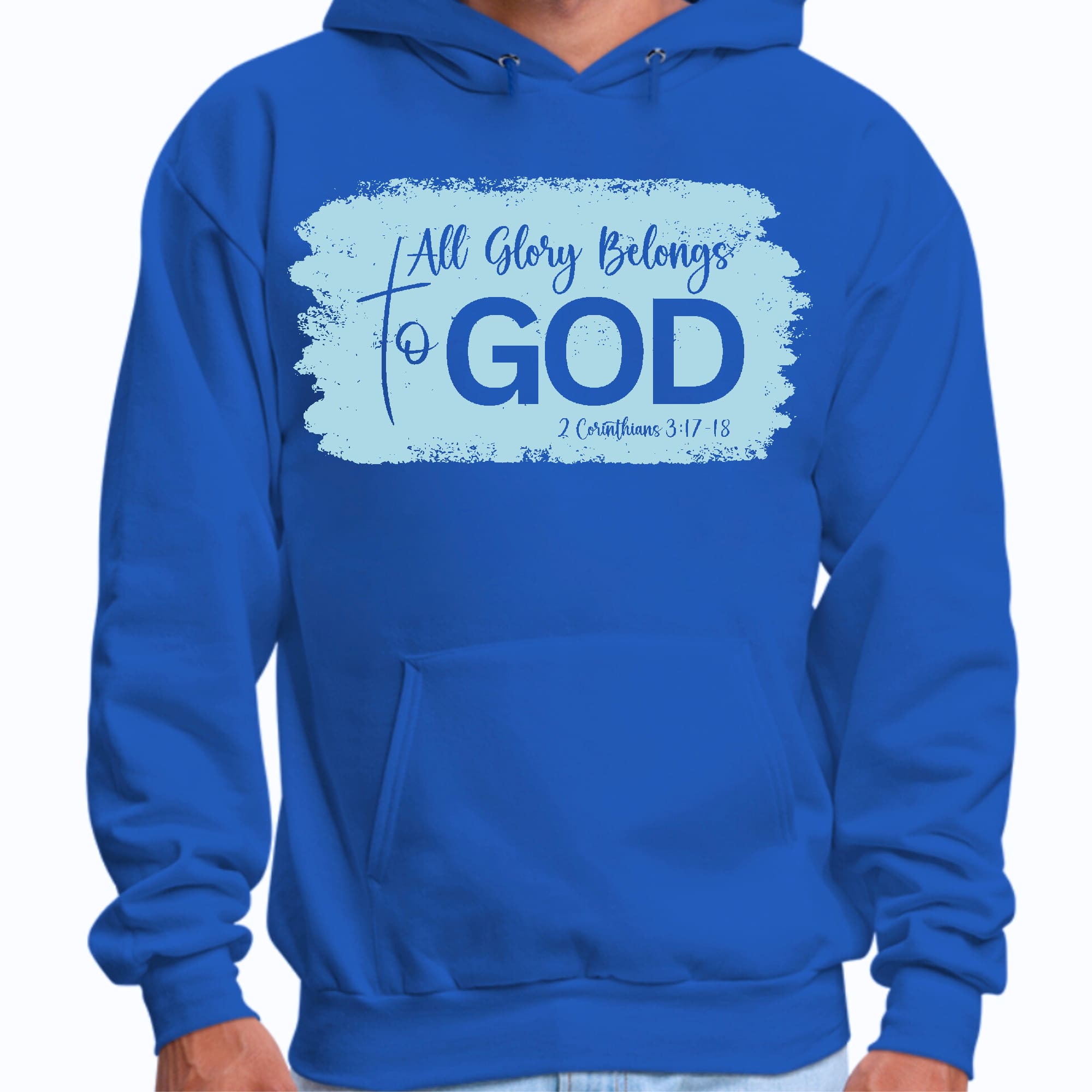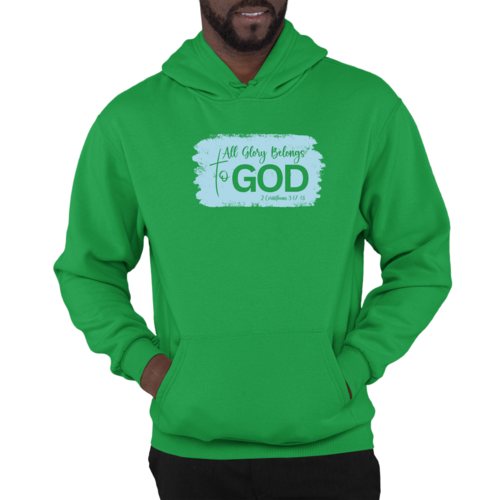 In summary, the Men's Graphic Hoodie: All Glory Belongs to God in Light Blue is more than just a hoodie; it's a representation of your faith and personal style. With its trendy design, quality materials, and functional features, it's a must-have addition to your wardrobe. Embrace your creativity and express your beliefs with this stylish and comfortable hoodie.